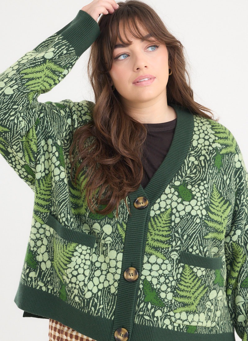 Lovelace Leafy Forest Intarsia Oversized Cardigan