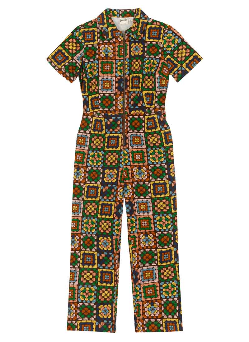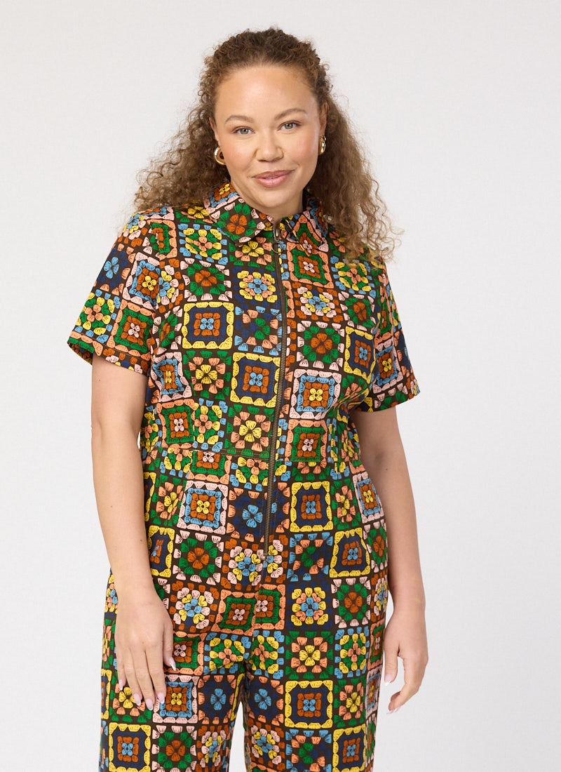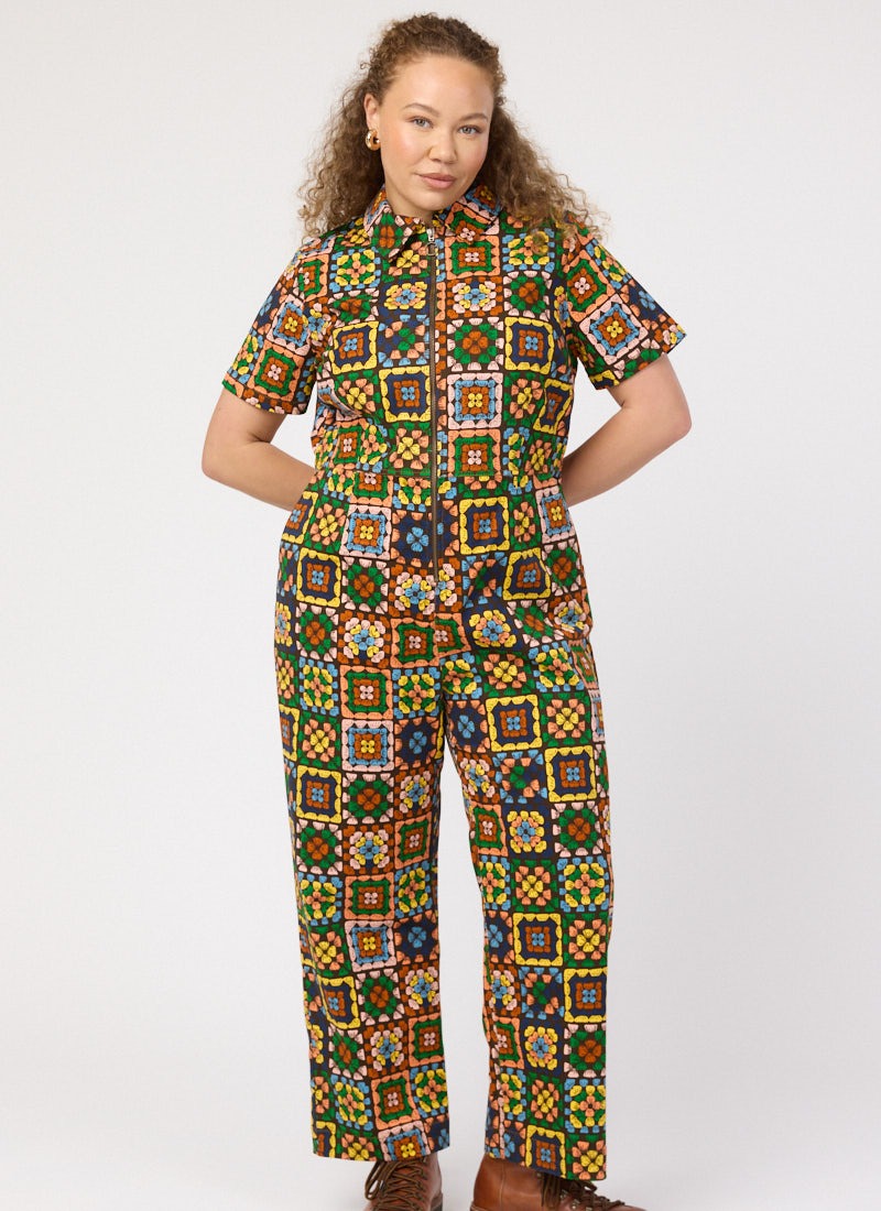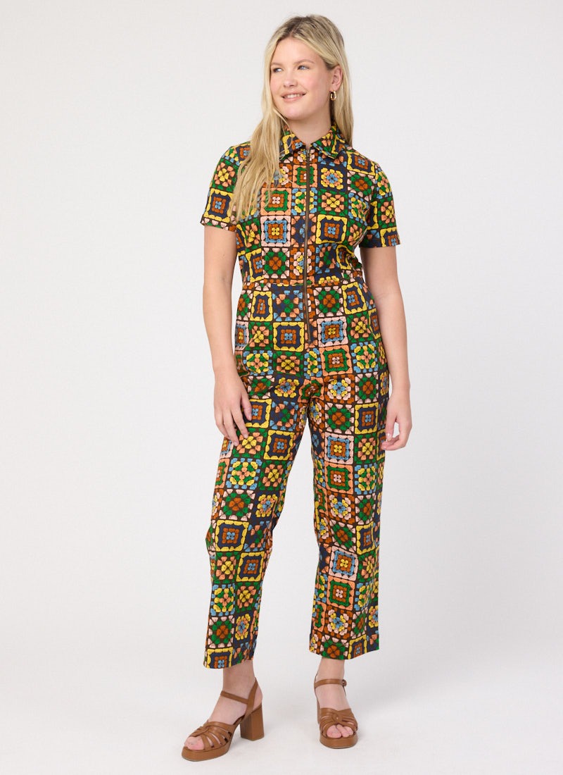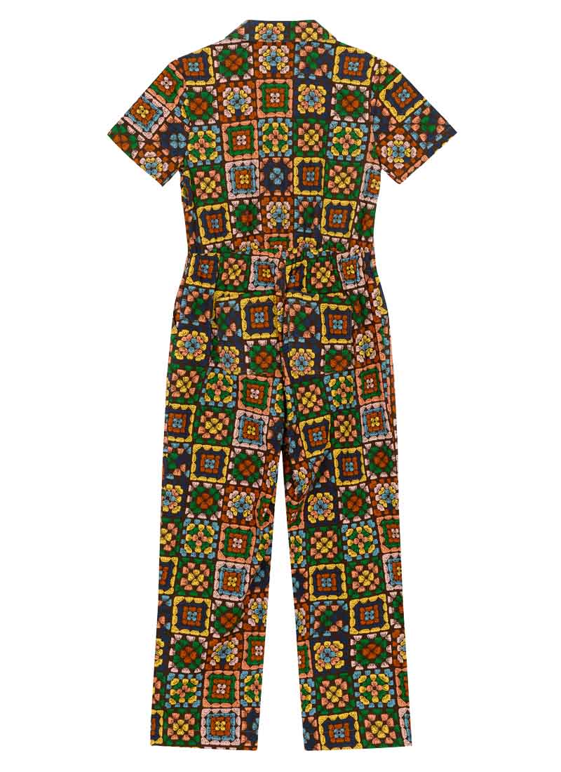 Robin Granny Squares Print Short Sleeve Boilersuit
