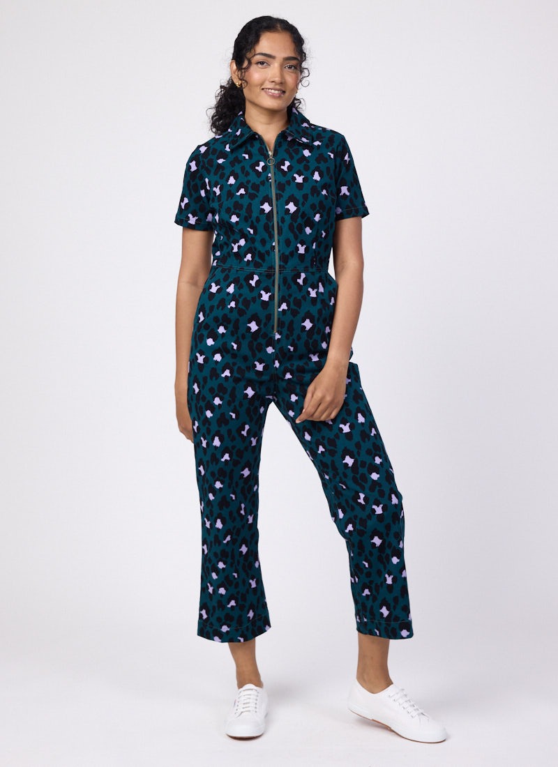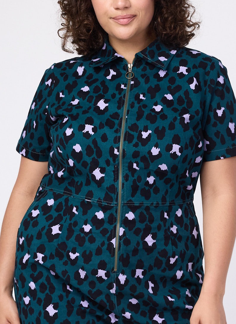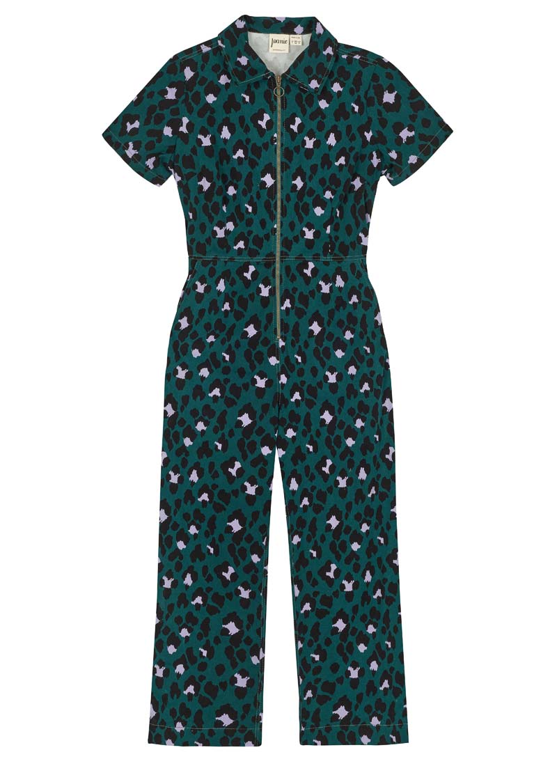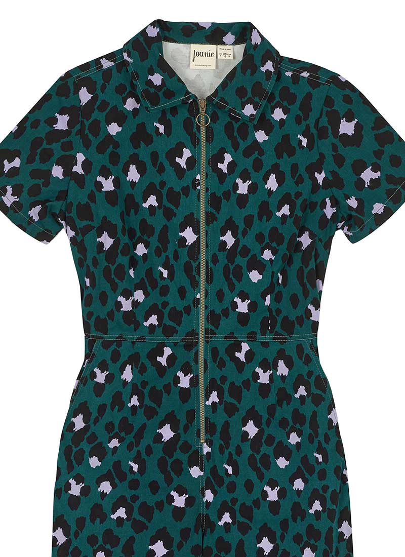 Robin Leopard Print Short Sleeve Boilersuit - Green