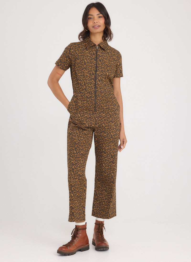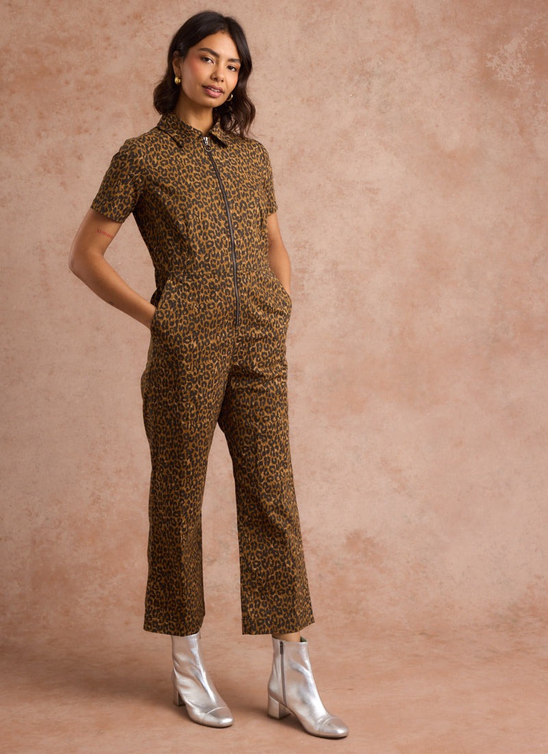 Robin Leopard Print Short Sleeve Boilersuit