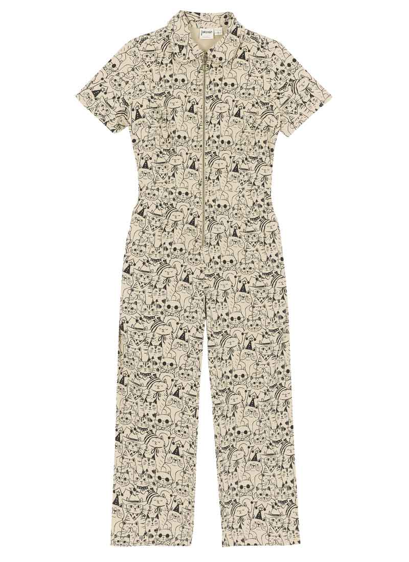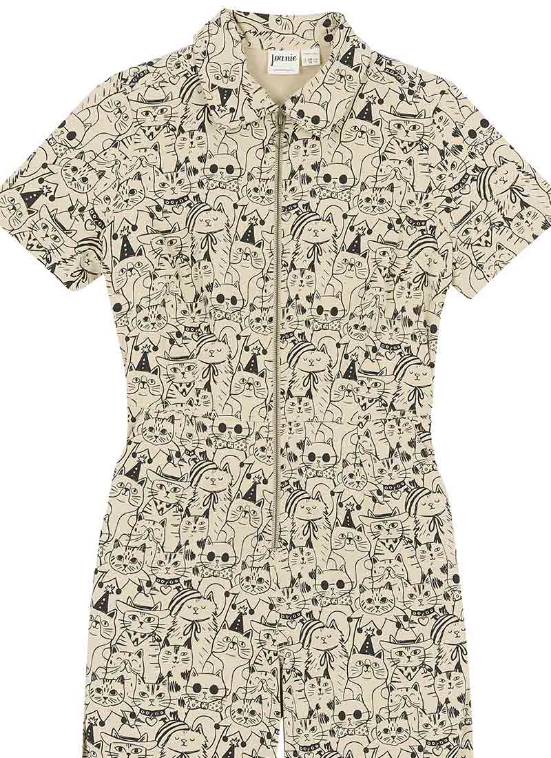 Robin Cat Print Short Sleeve Boilersuit