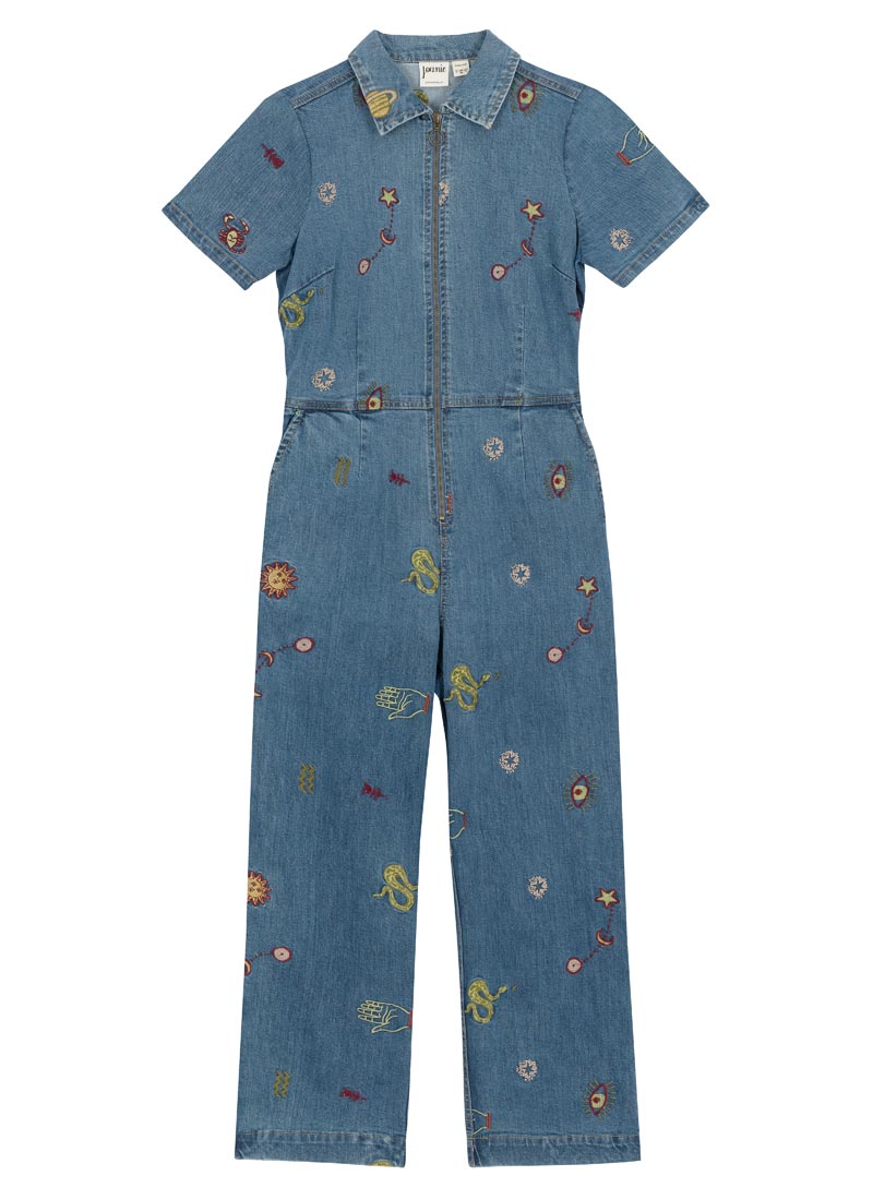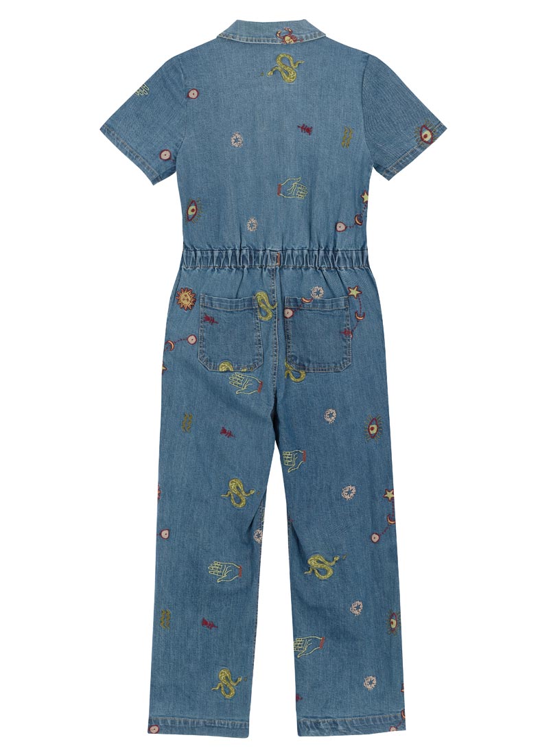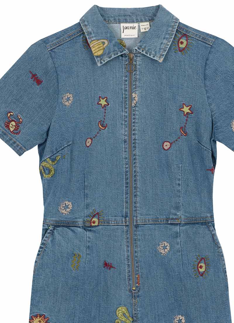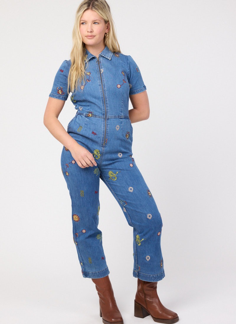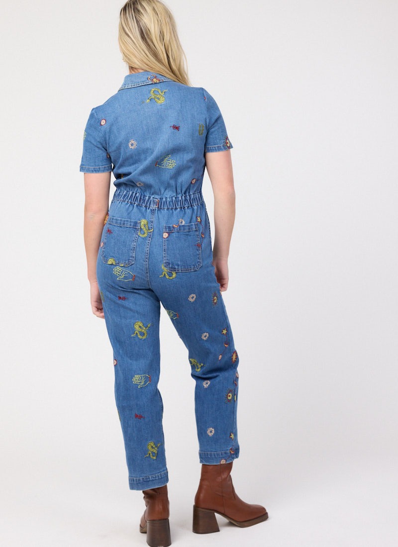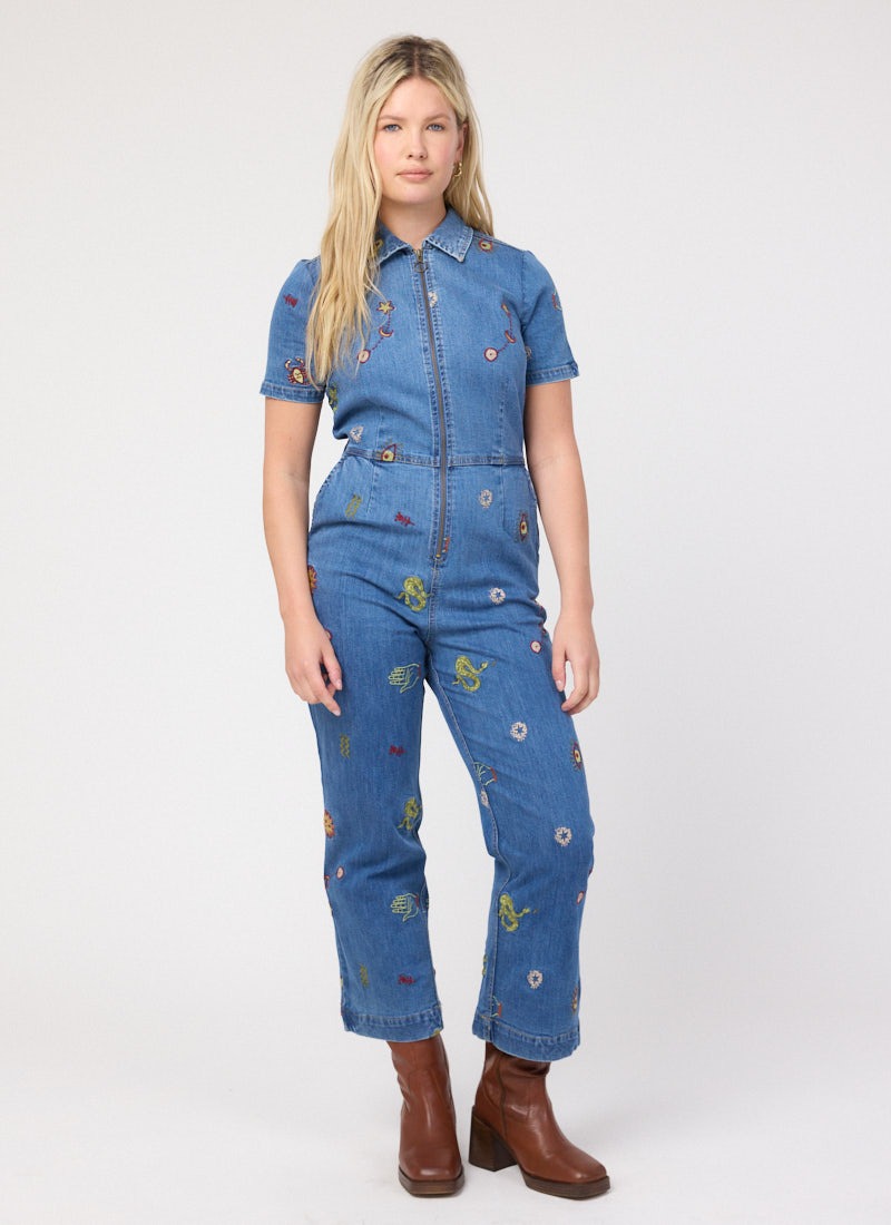 Robin Embroidered Denim Short Sleeve Boilersuit