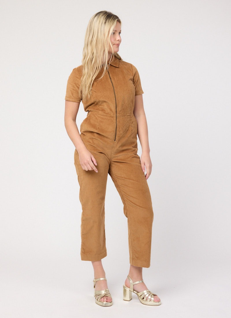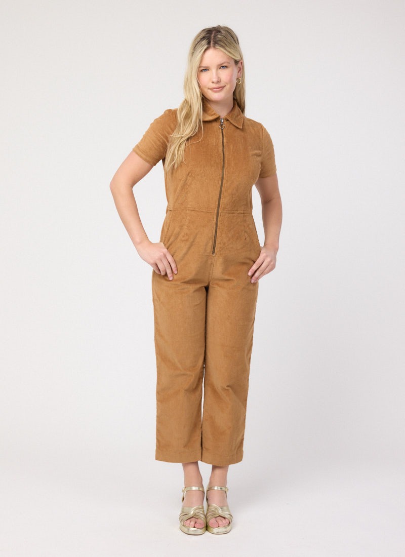 Robin Short Sleeve Corduroy Boilersuit - Brown