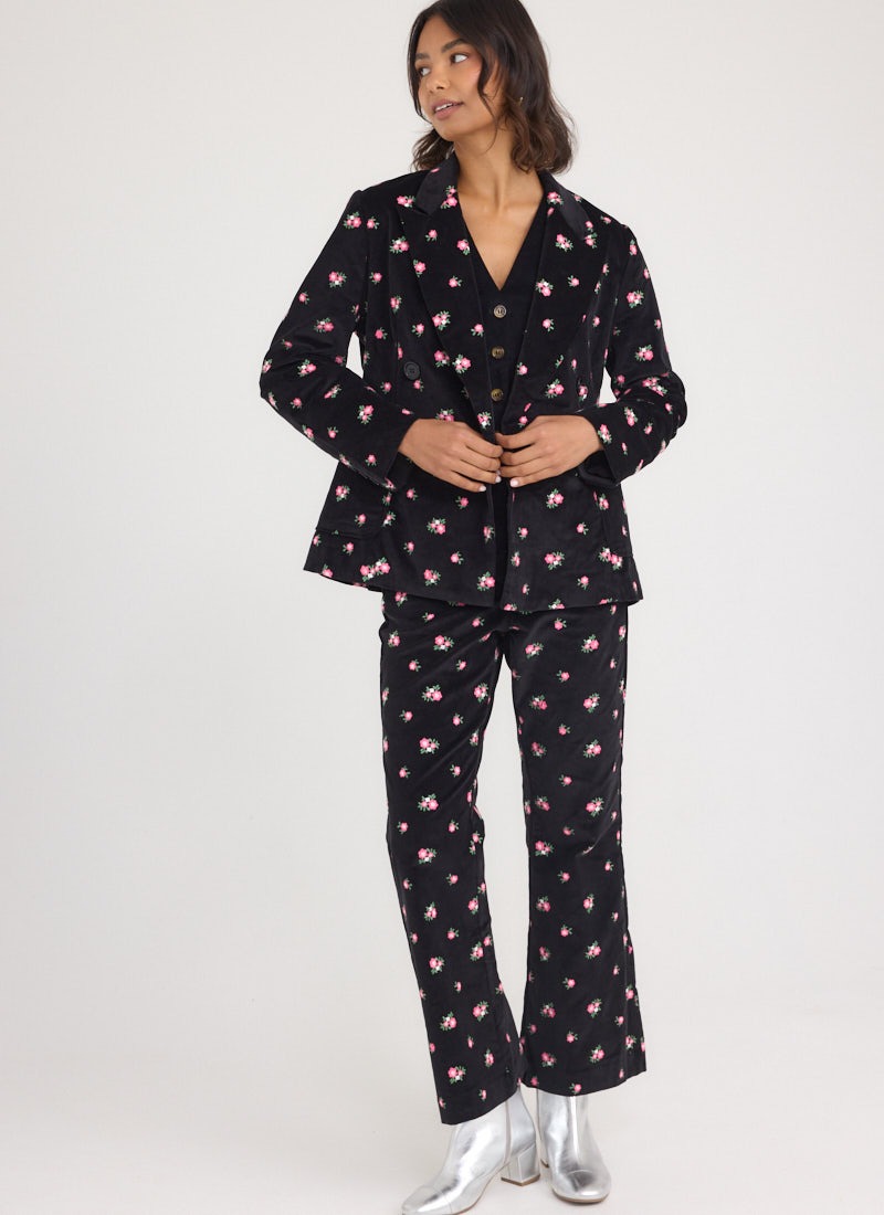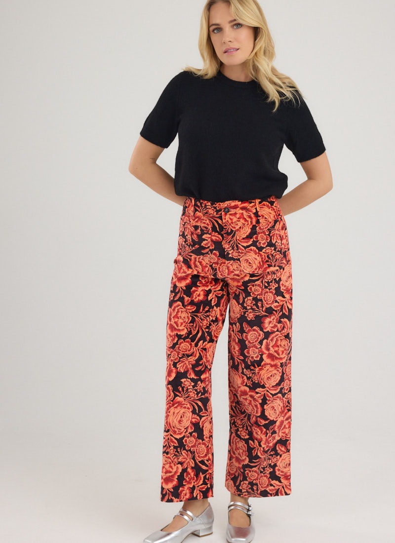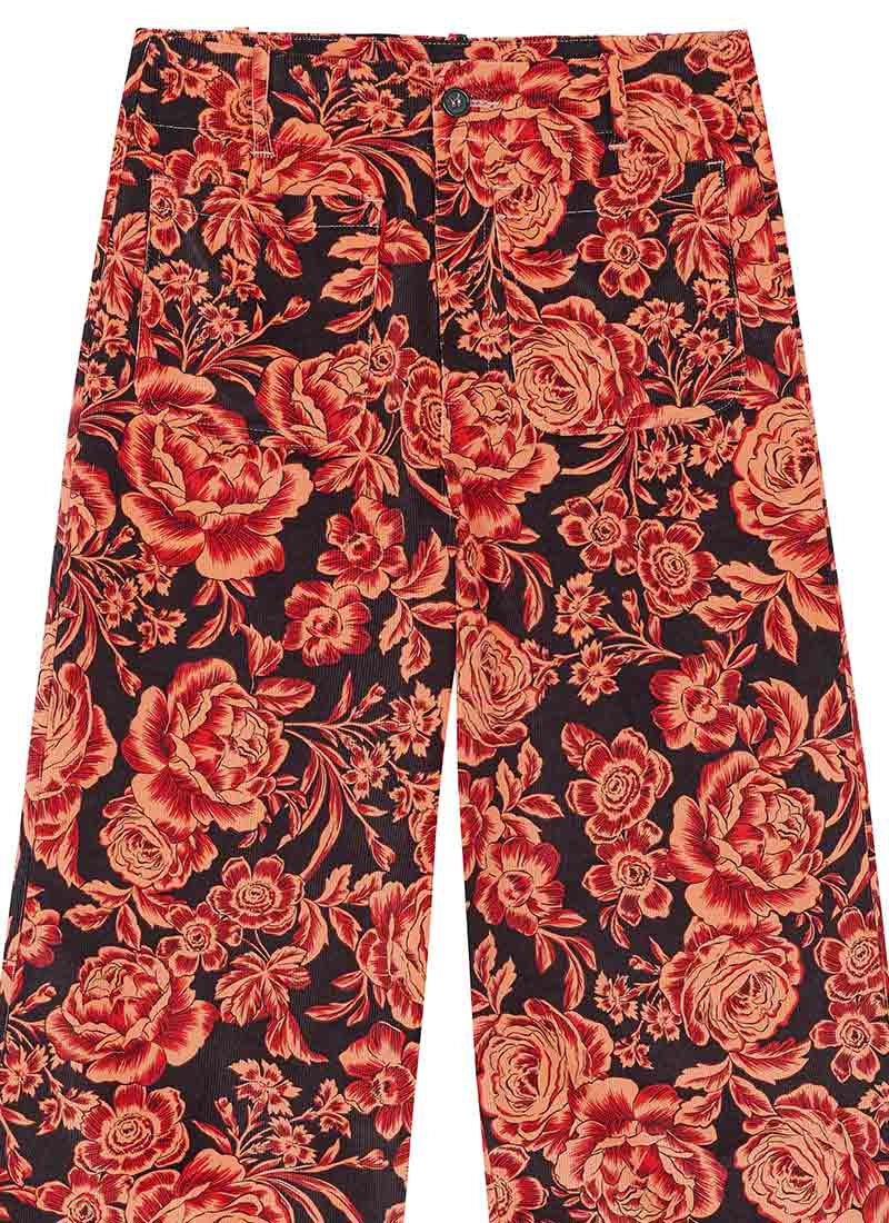 Pippa Blooming Floral Print High Waist Corduroy Trousers