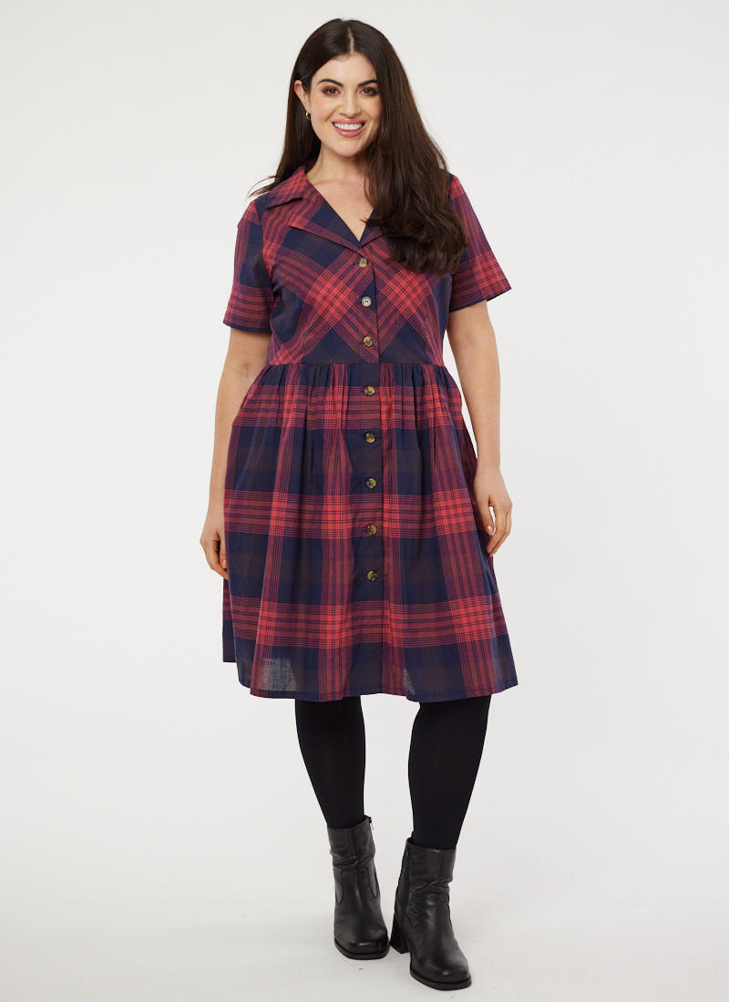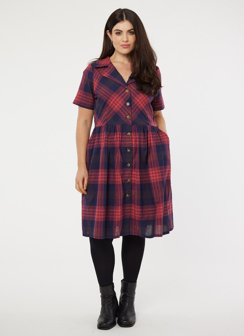 Pepita Check Shirt Dress - Red