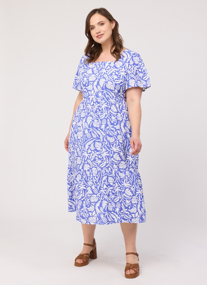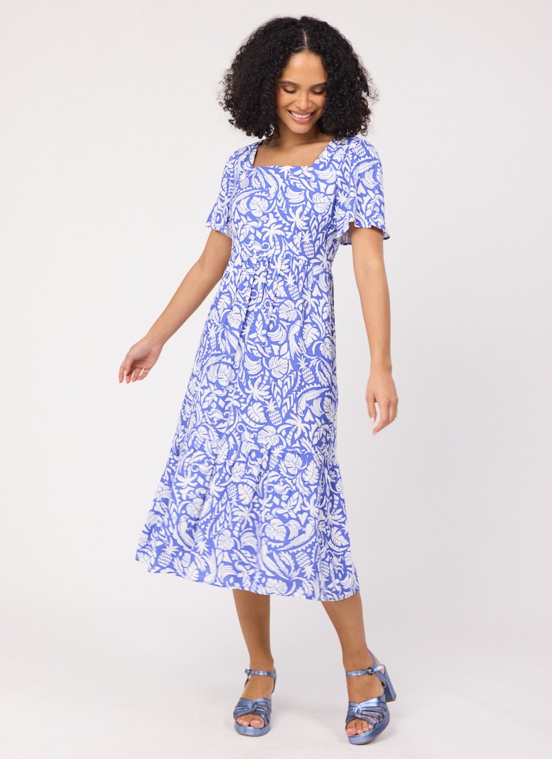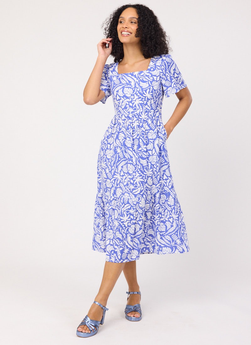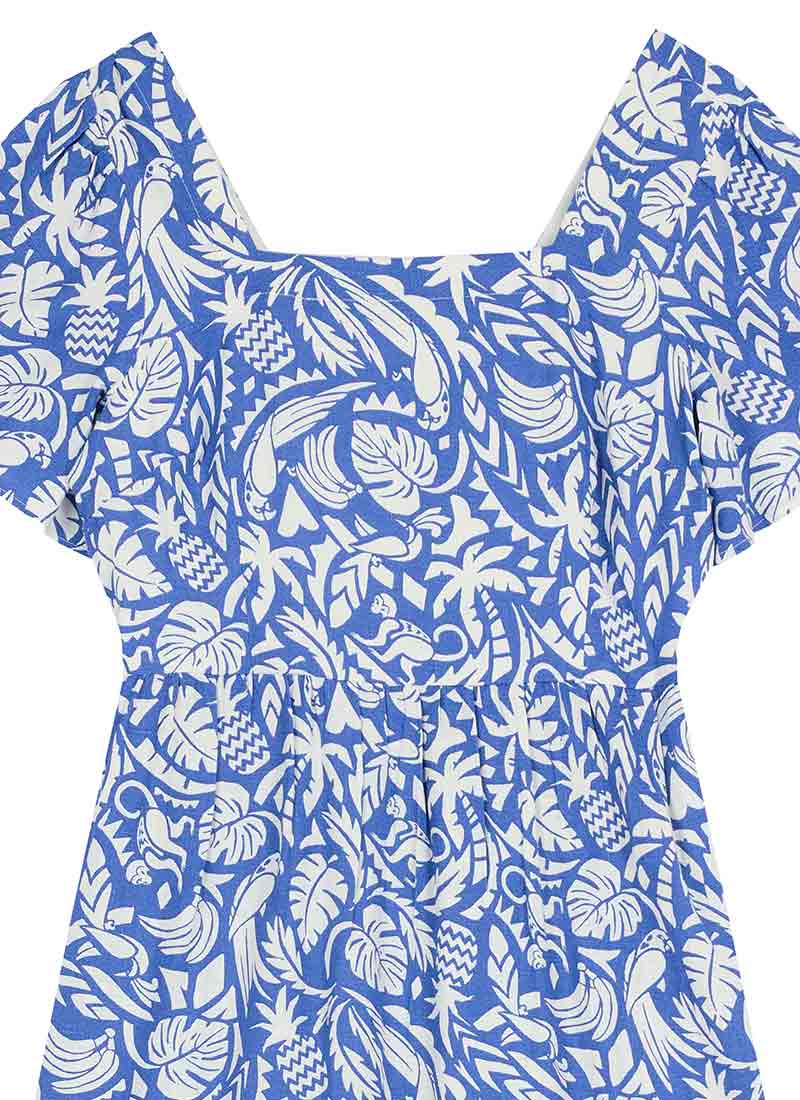 Georgia Tropical Palm Print Square Neck Dress