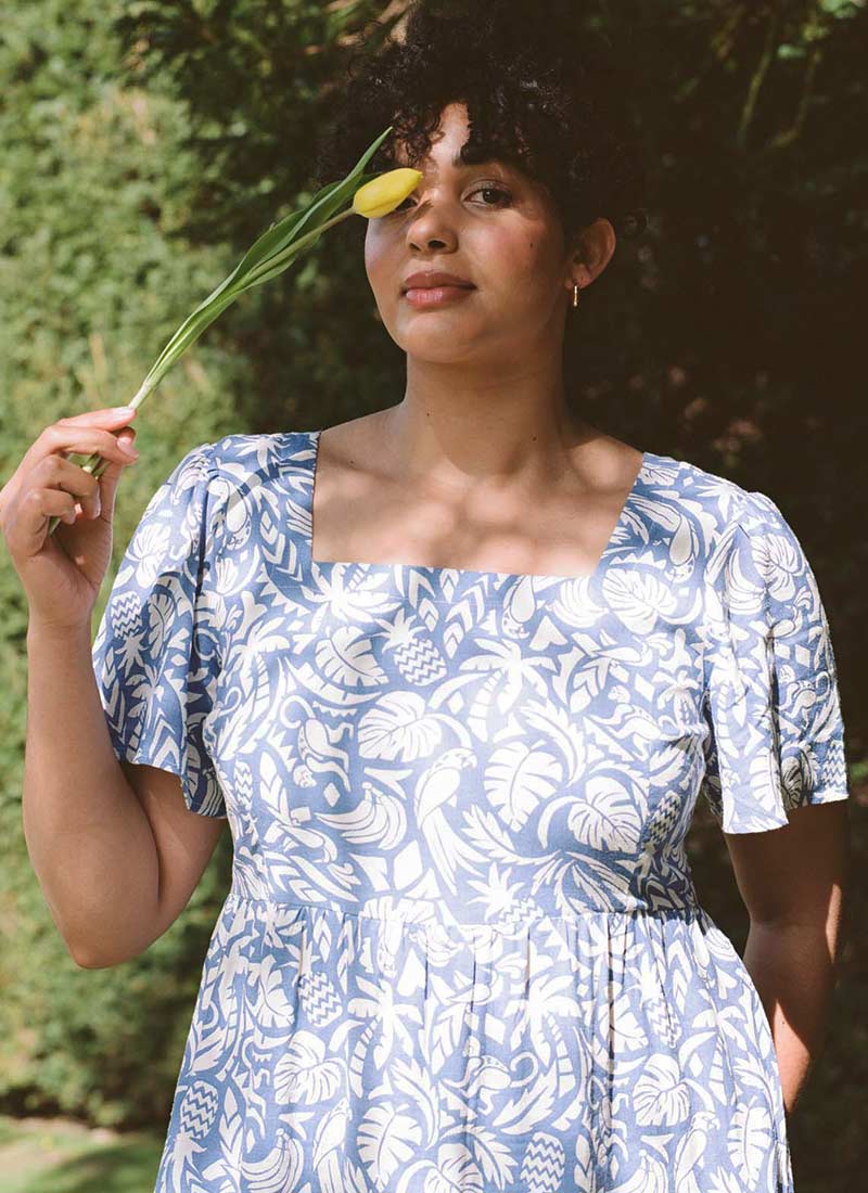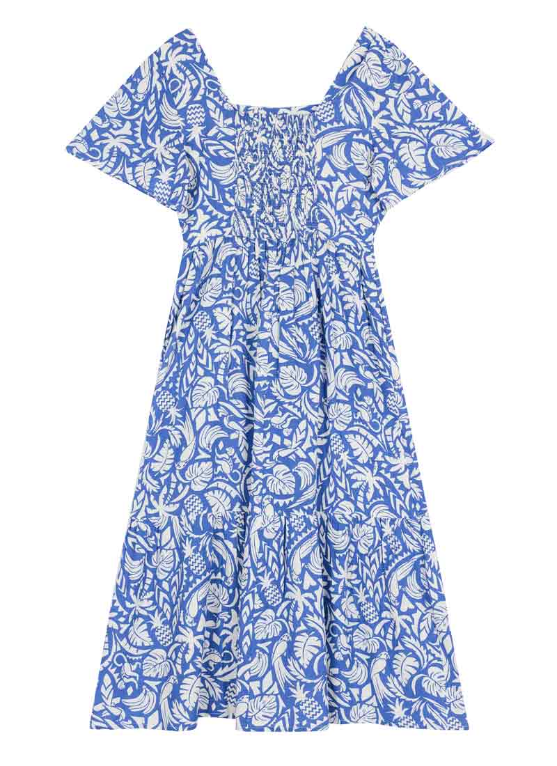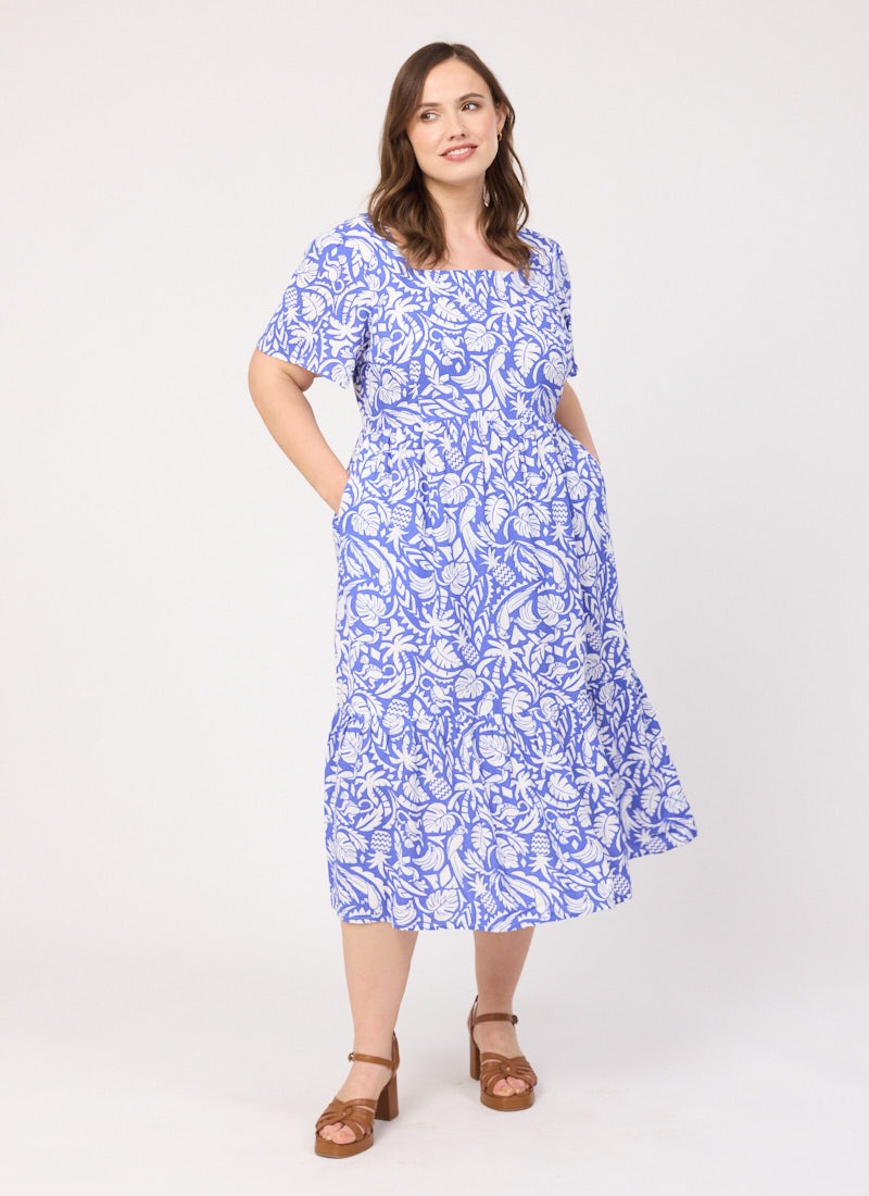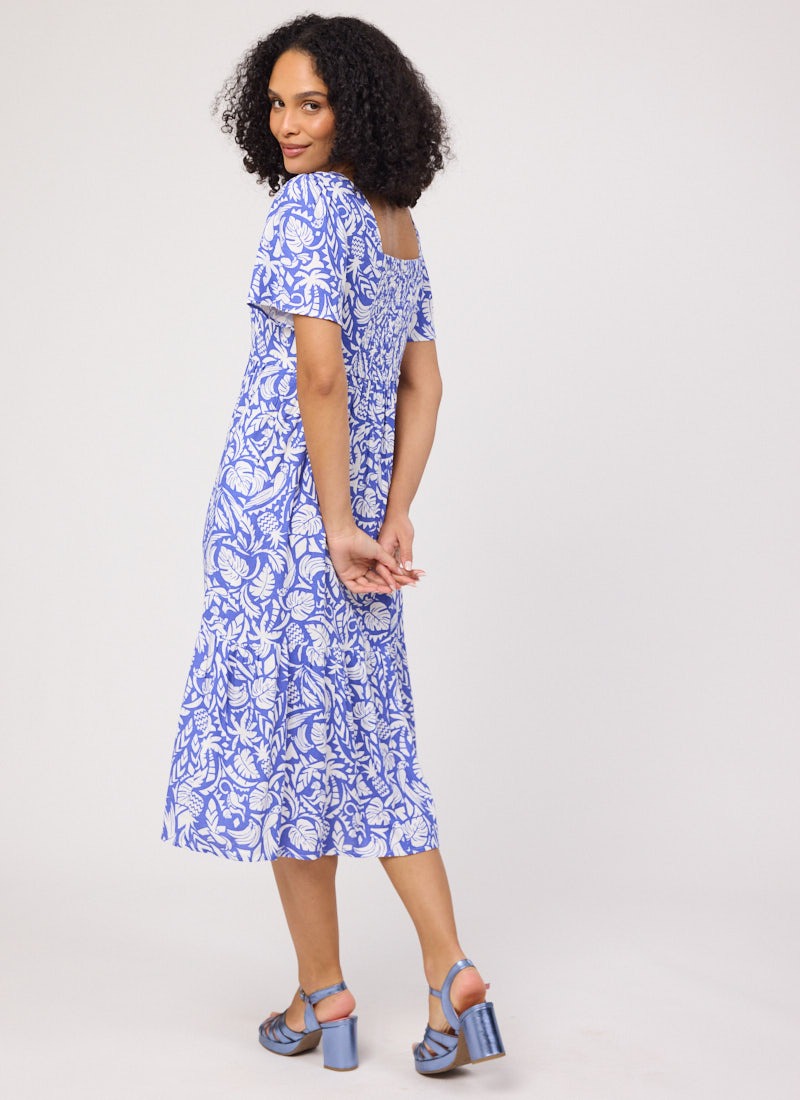 Georgia Tropical Palm Print Square Neck Dress