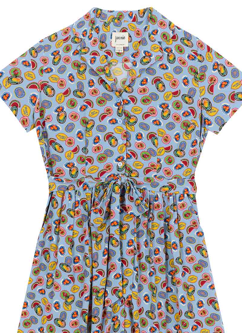 Carly Fruit Sticker Print Midi Dress