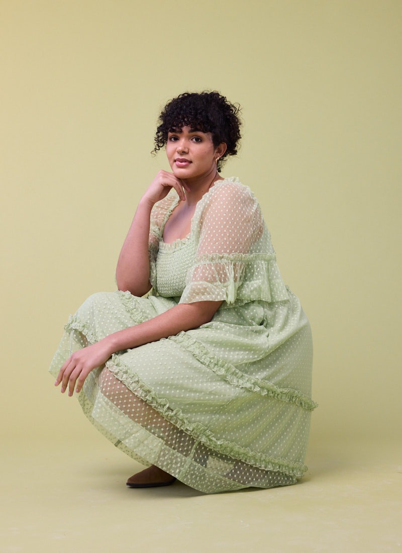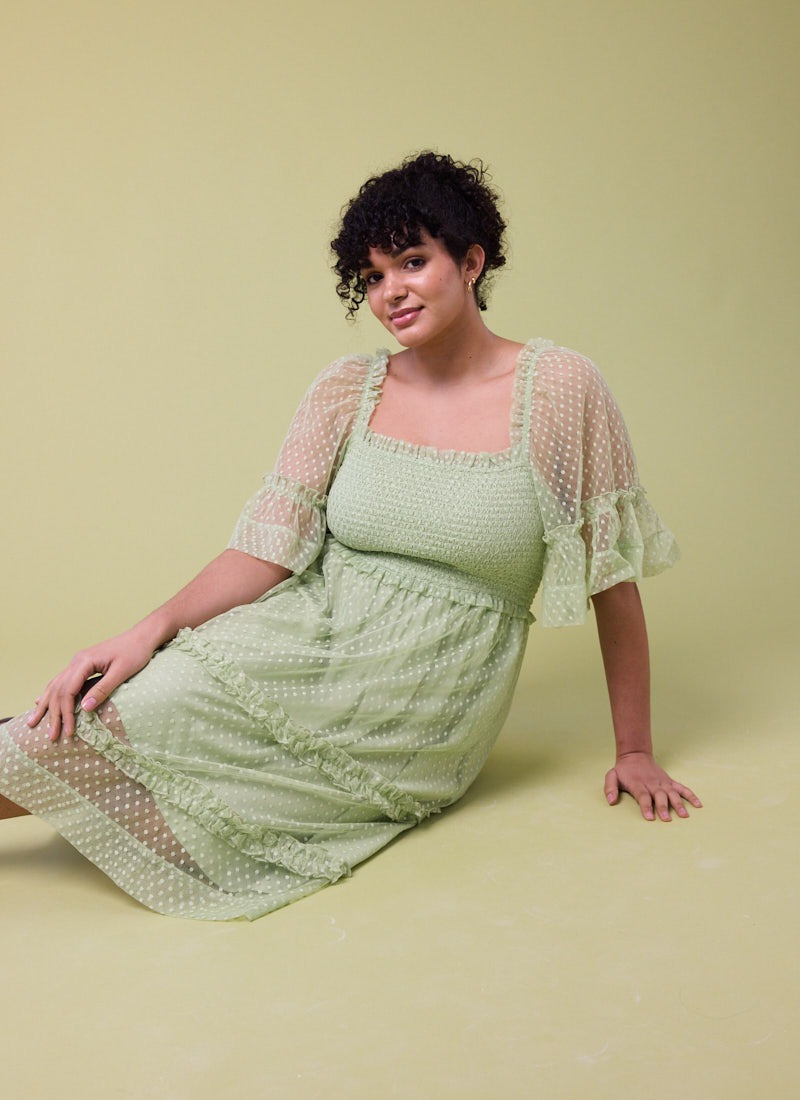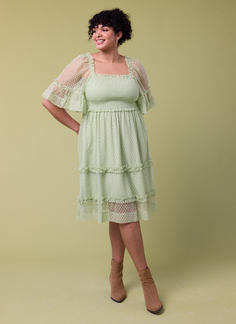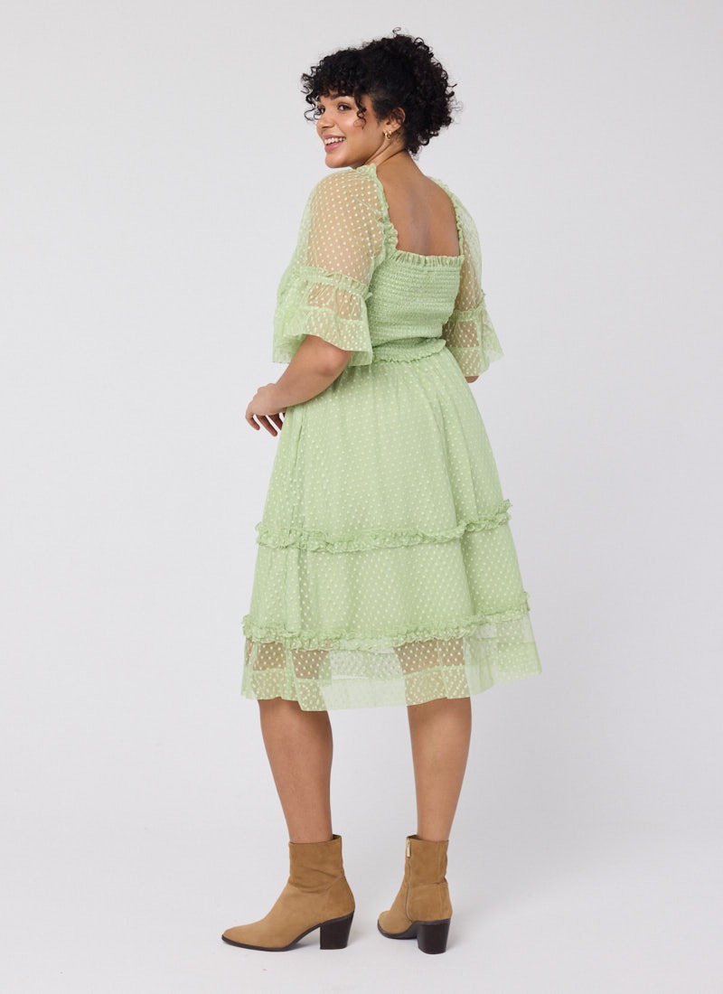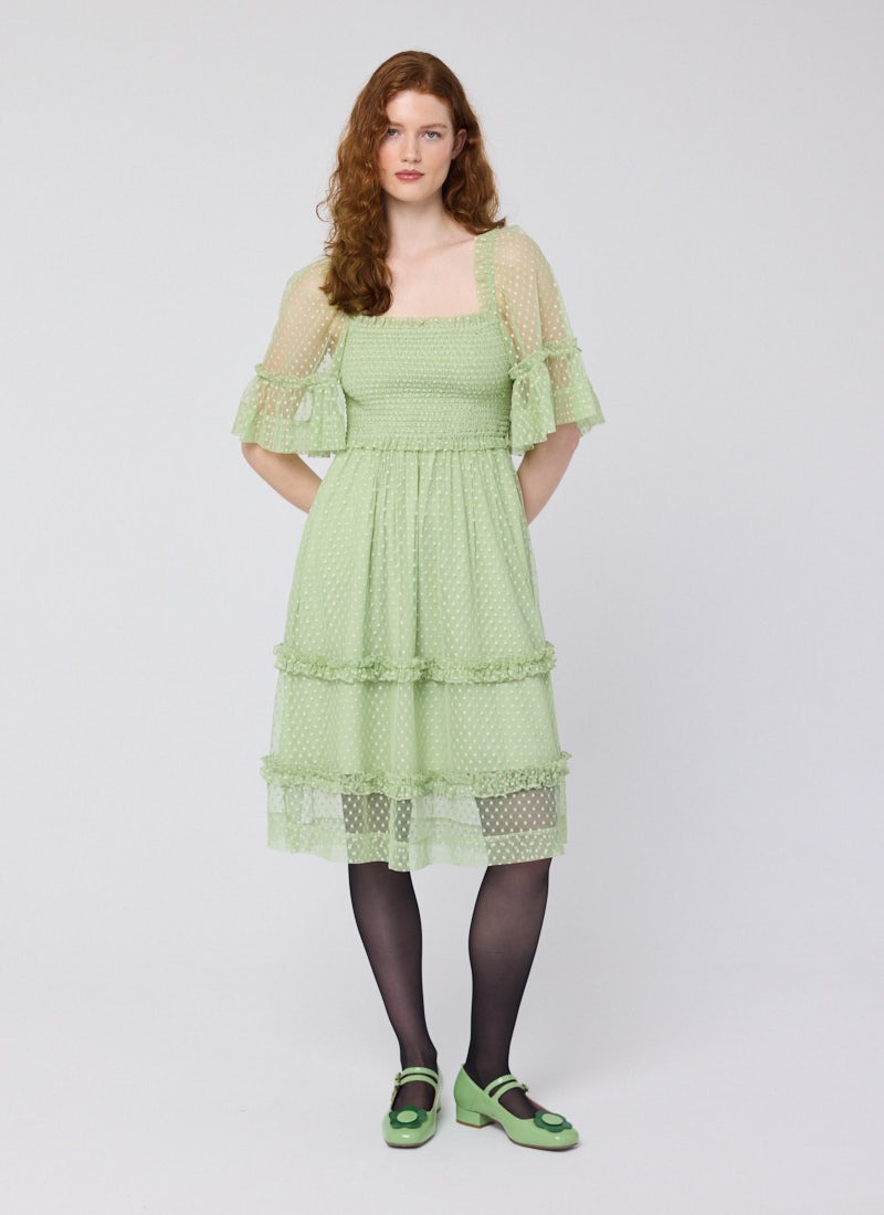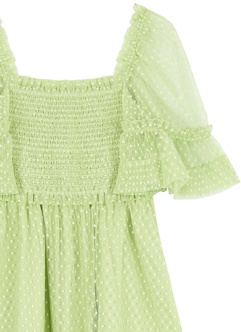 Jini Square Neck Polka Dot Mesh Dress - Green