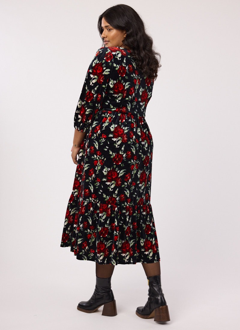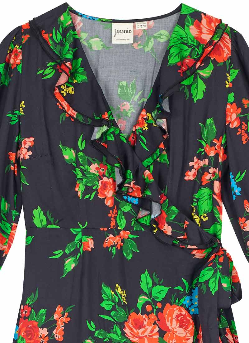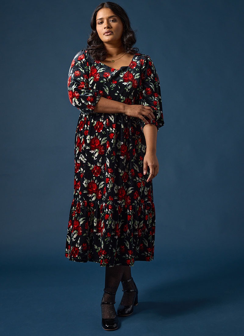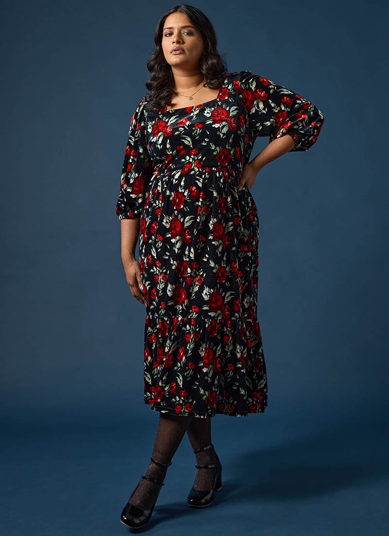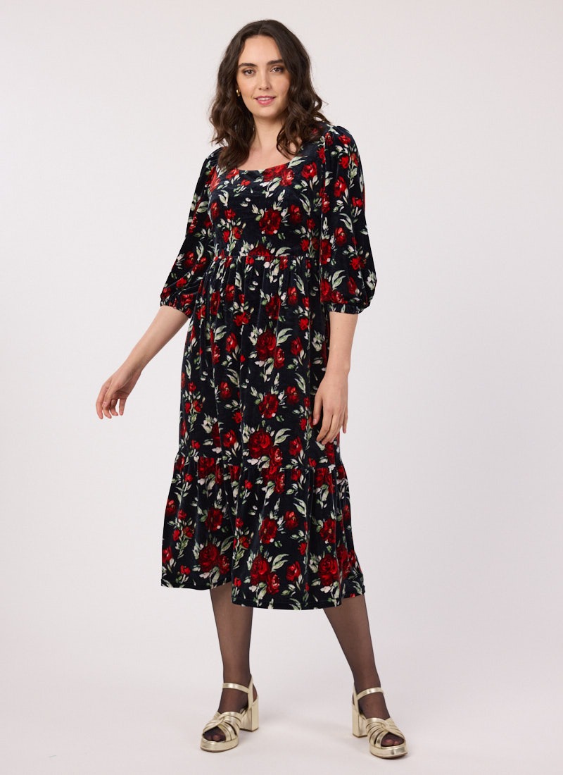 Priya Navy Floral Print Puff Sleeve Midi Dress