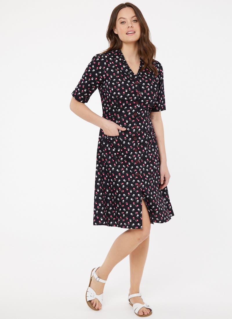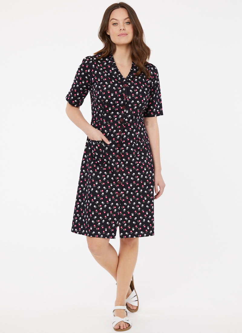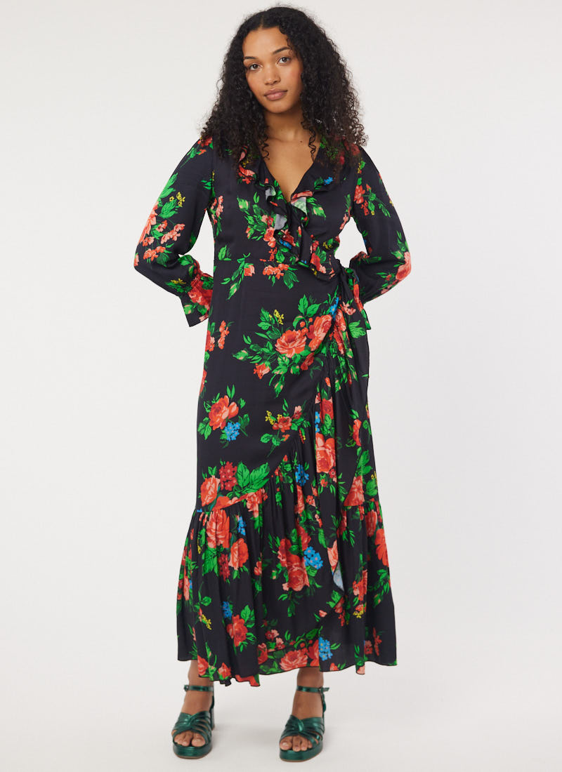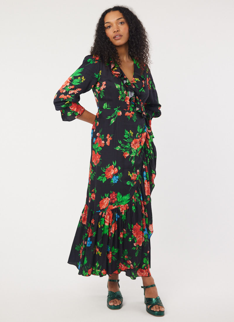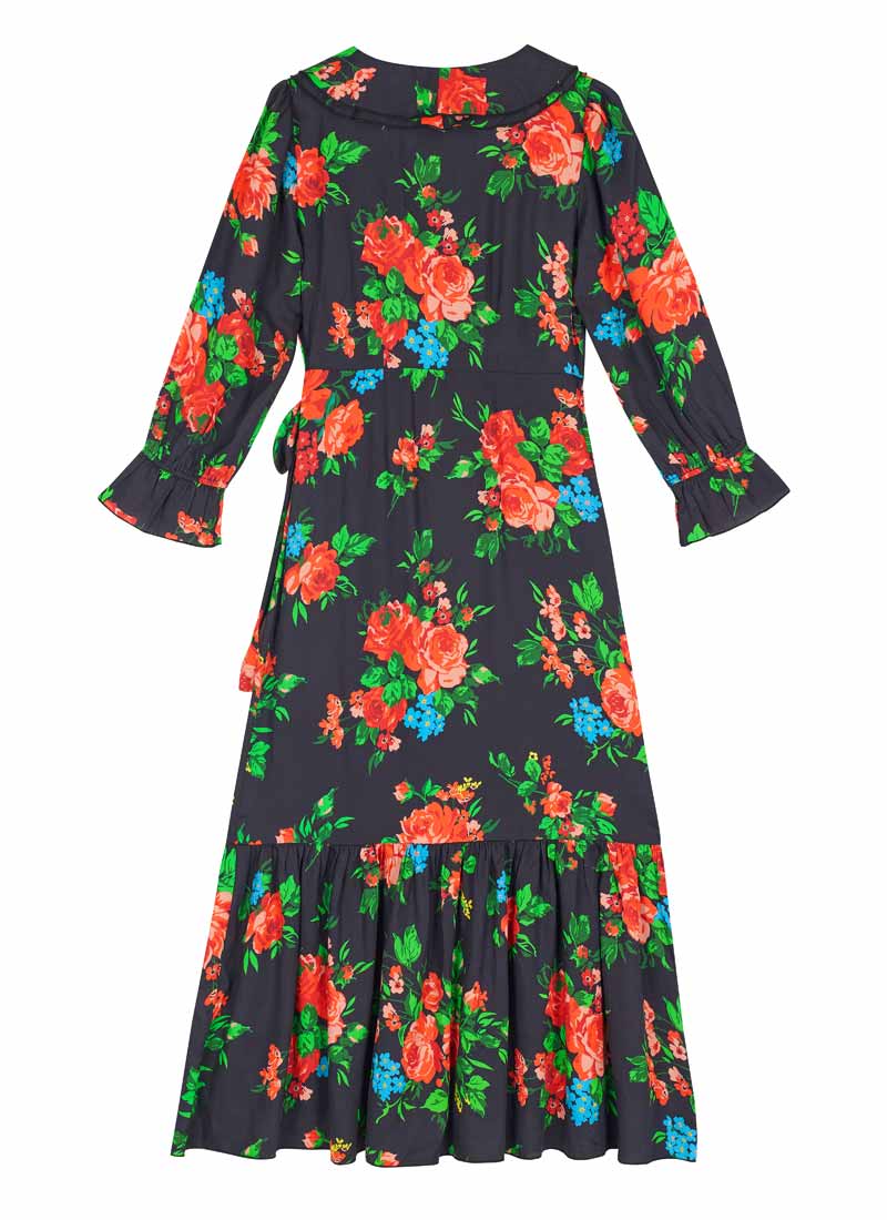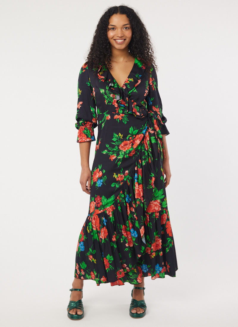 Priya Navy Floral Print Puff Sleeve Midi Dress
