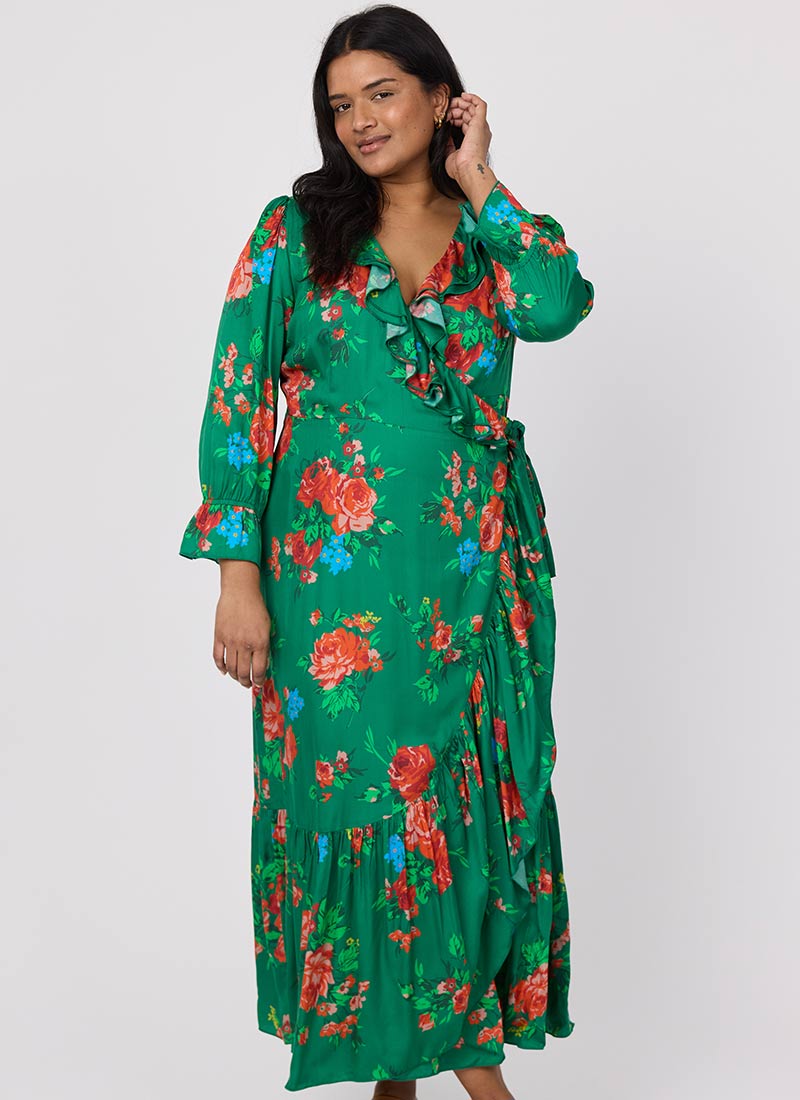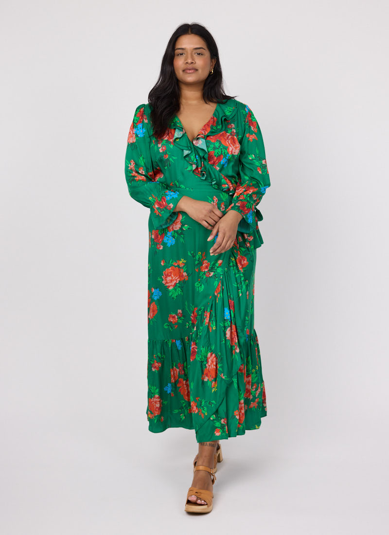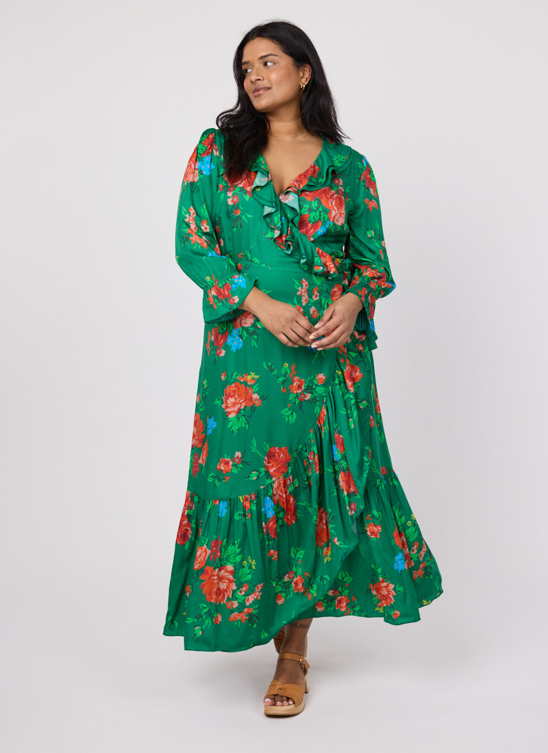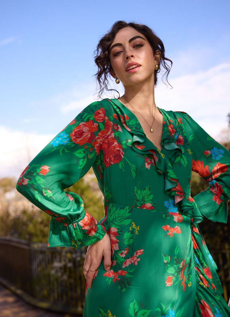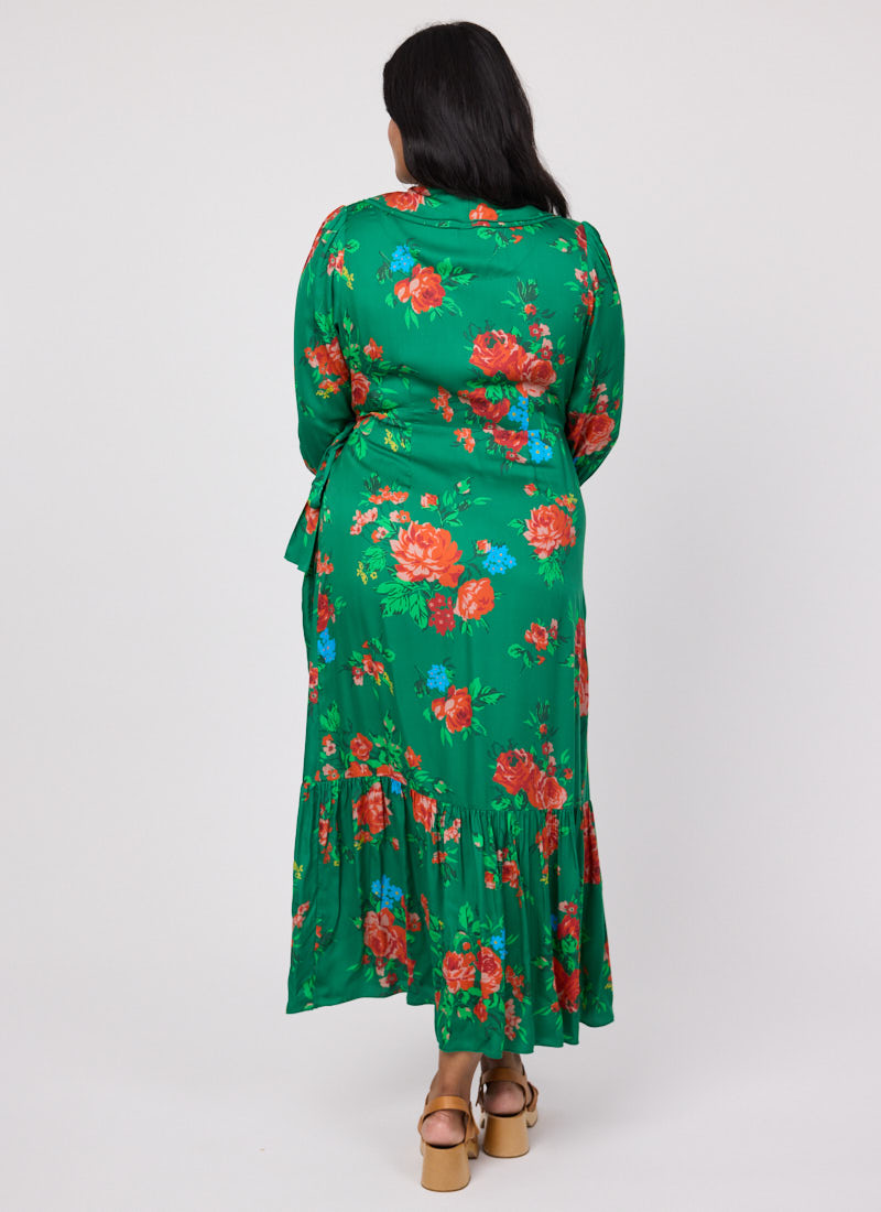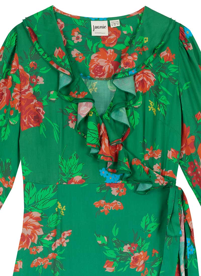 Eleri Sage Floral Print Crochet Trim Prairie Dress