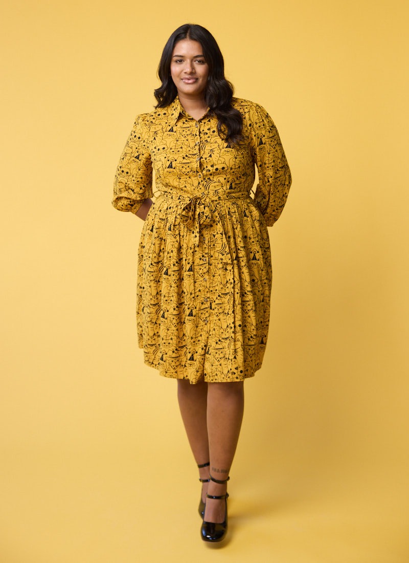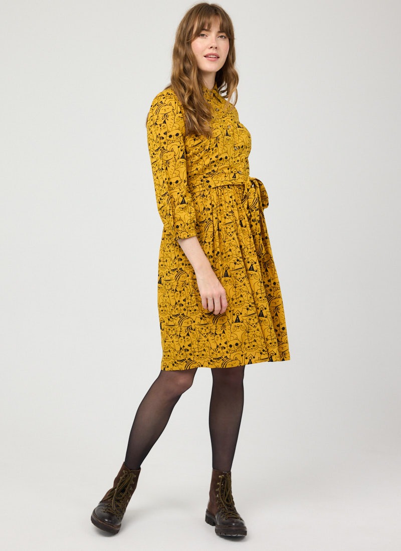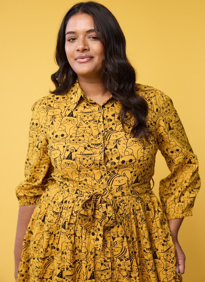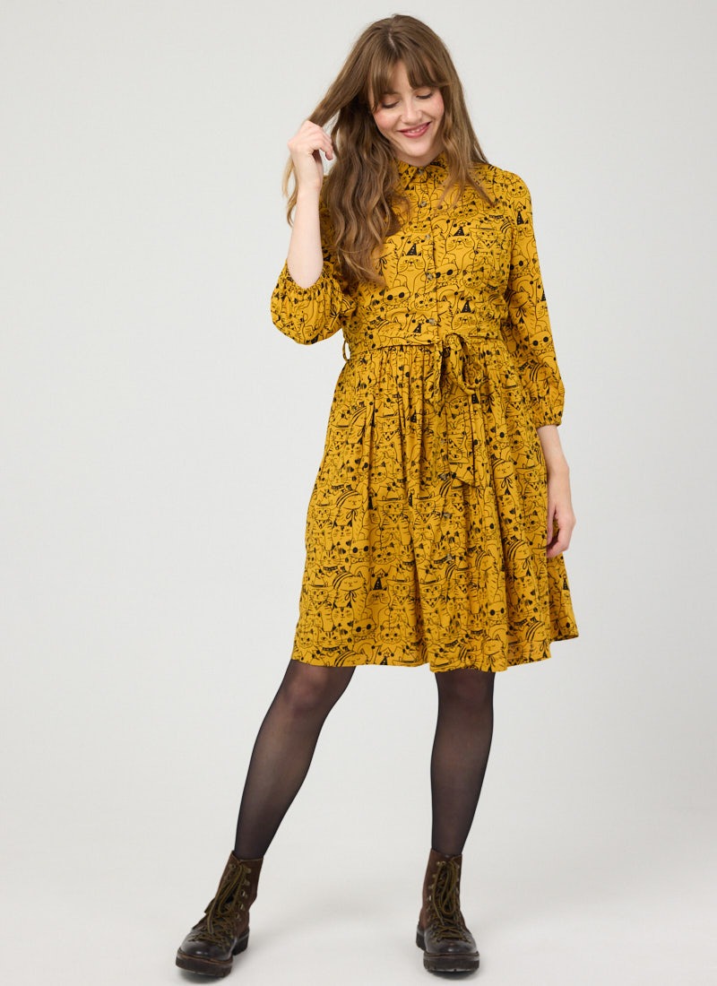 Andi Cat Print Shirt Dress