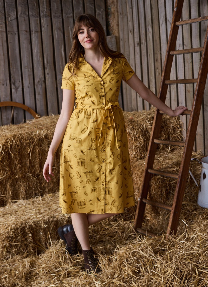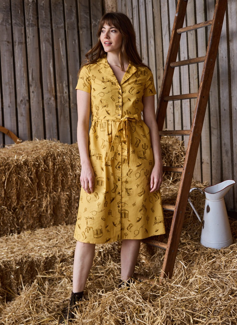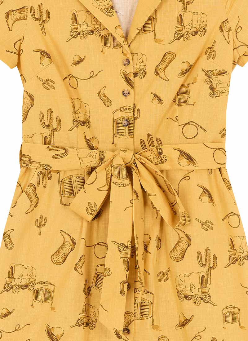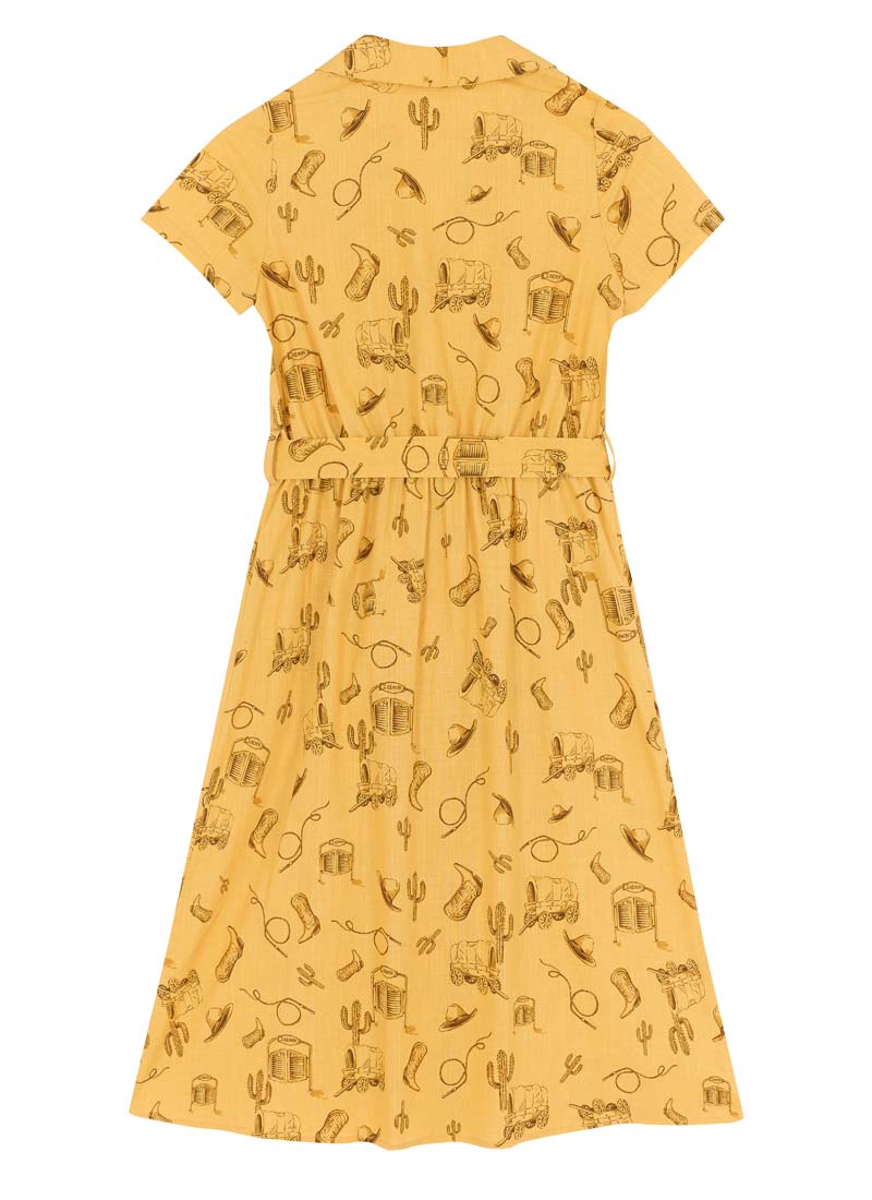 Santorini Western Rodeo Print Belted Midi Dress