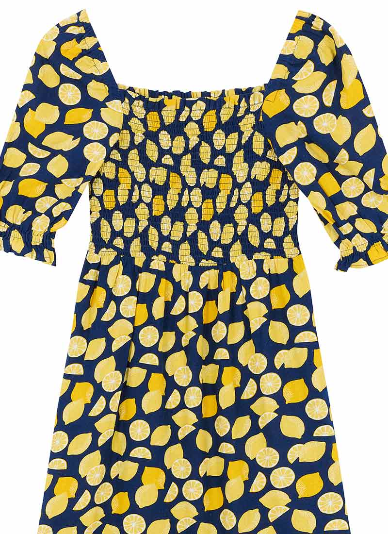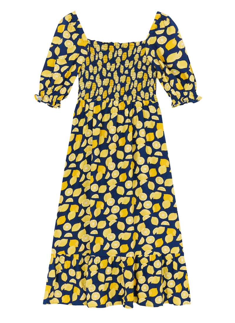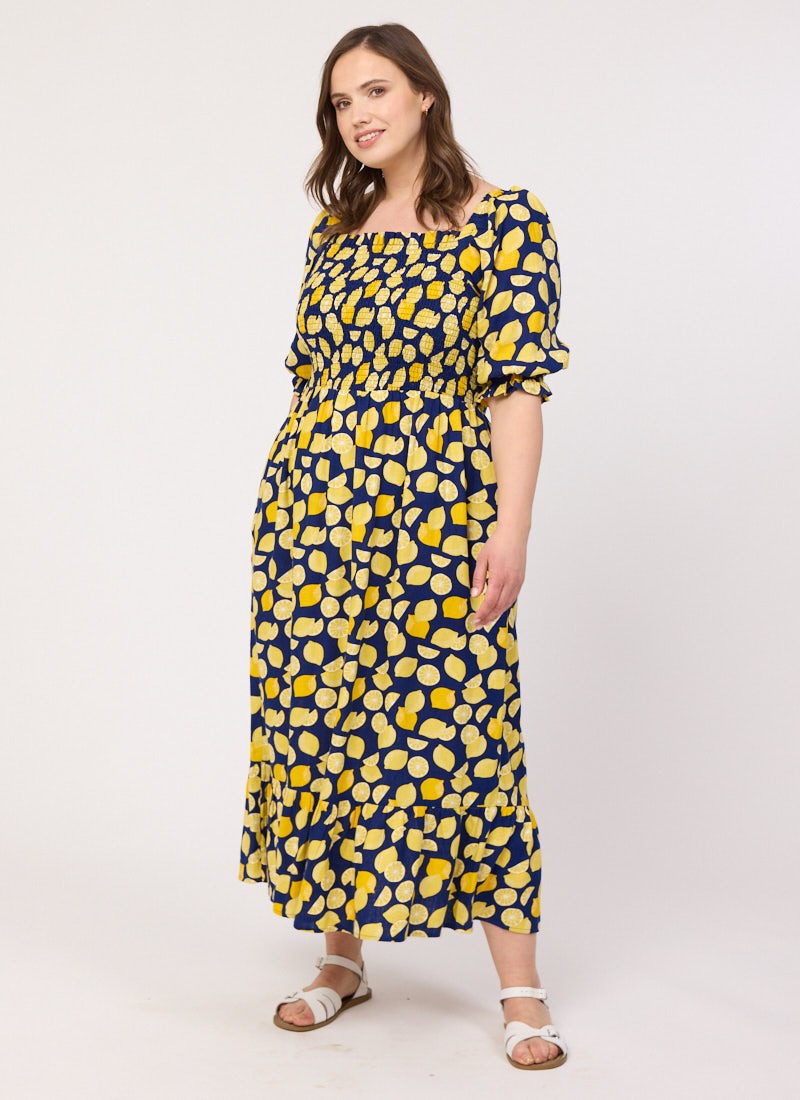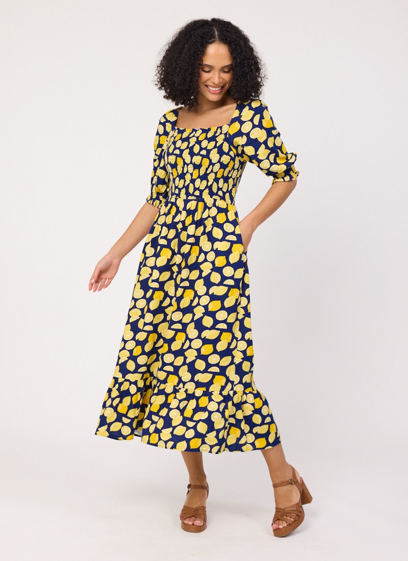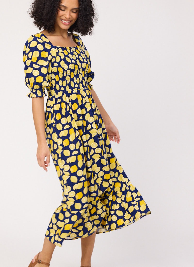 Cinna Lemon Print Square Neck Midi Dress