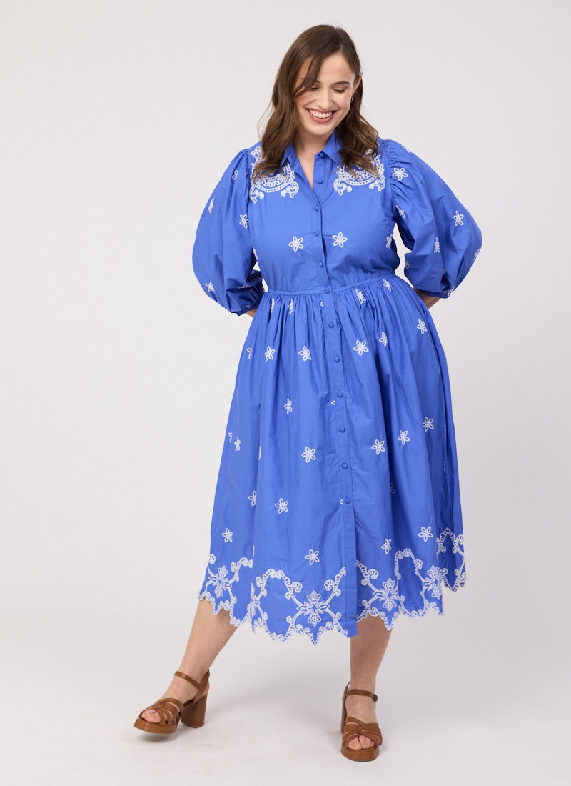 Rachida Embroidered Western Shirt Dress - Blue