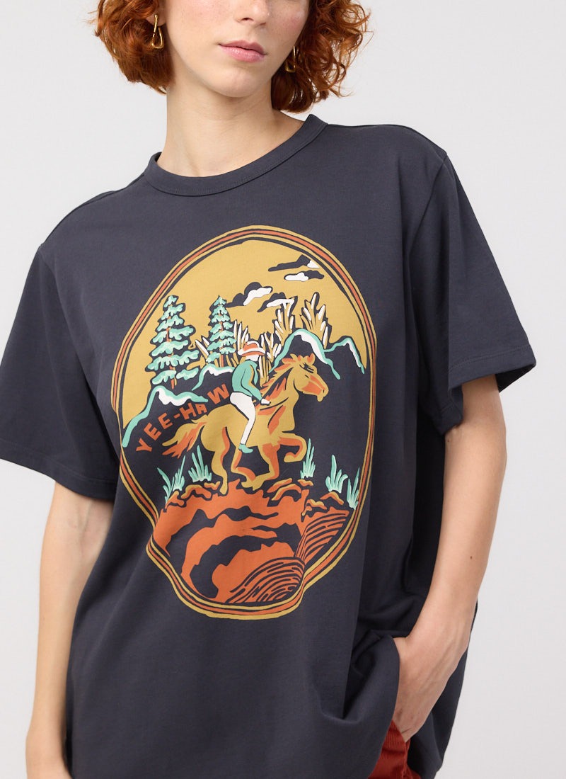 Bronco Cowboy Outlaw Print Boxy Fit Graphic Tee