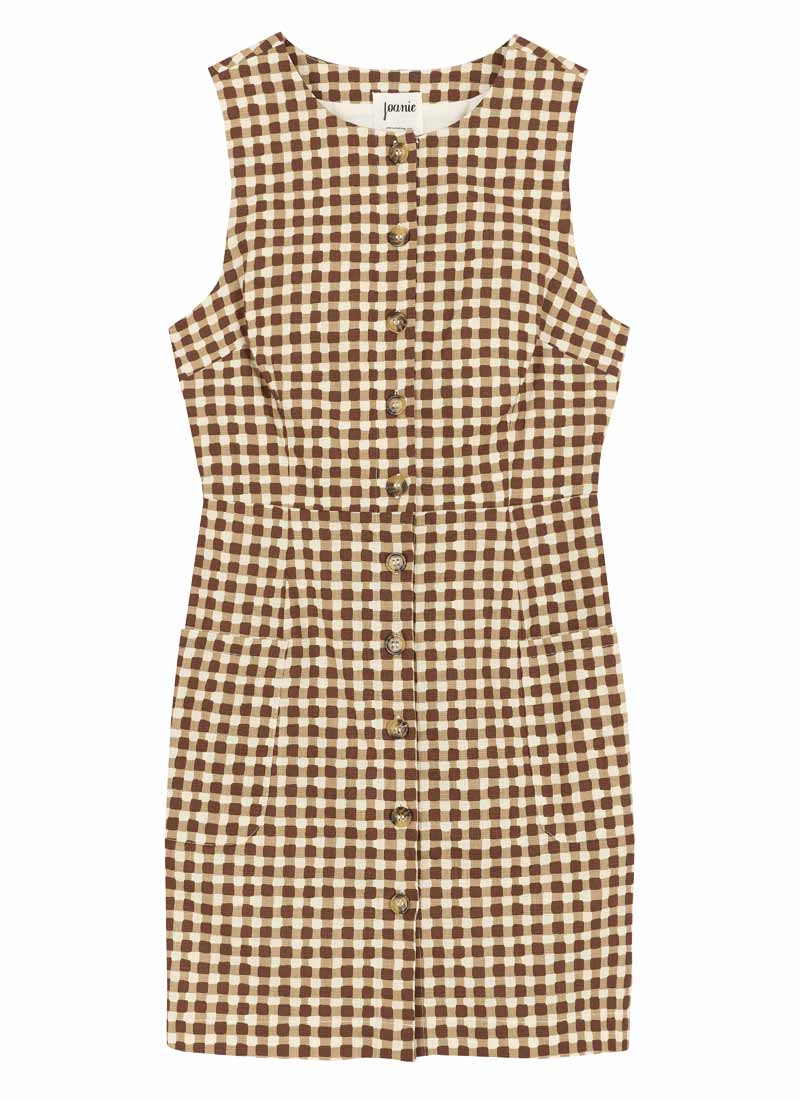 Ashley Gingham Boat Neck Mini Dress - Brown