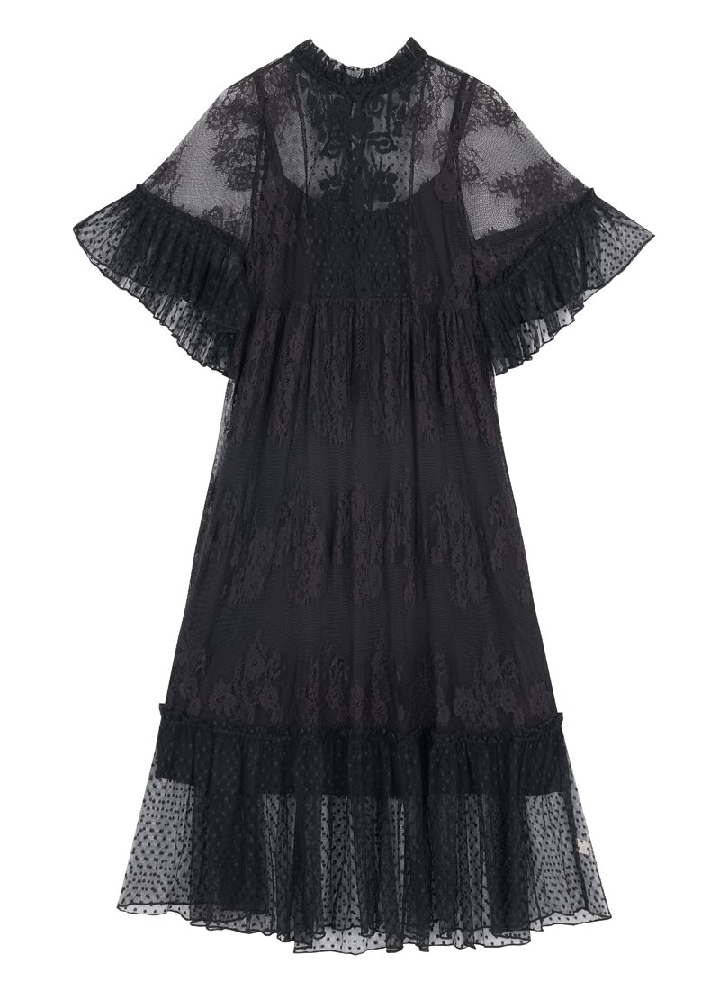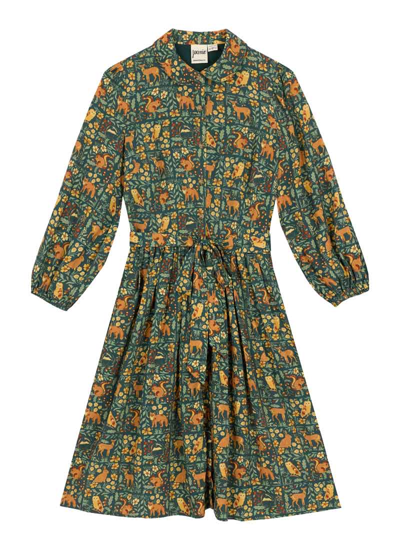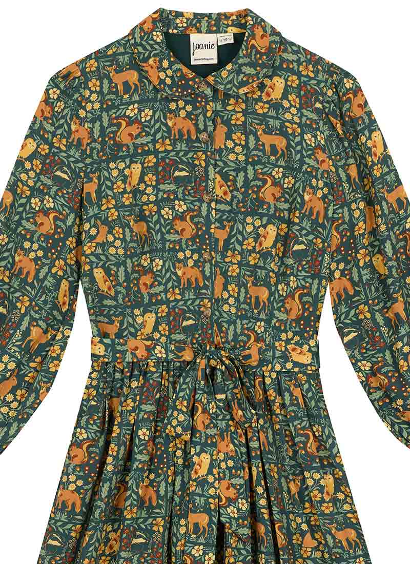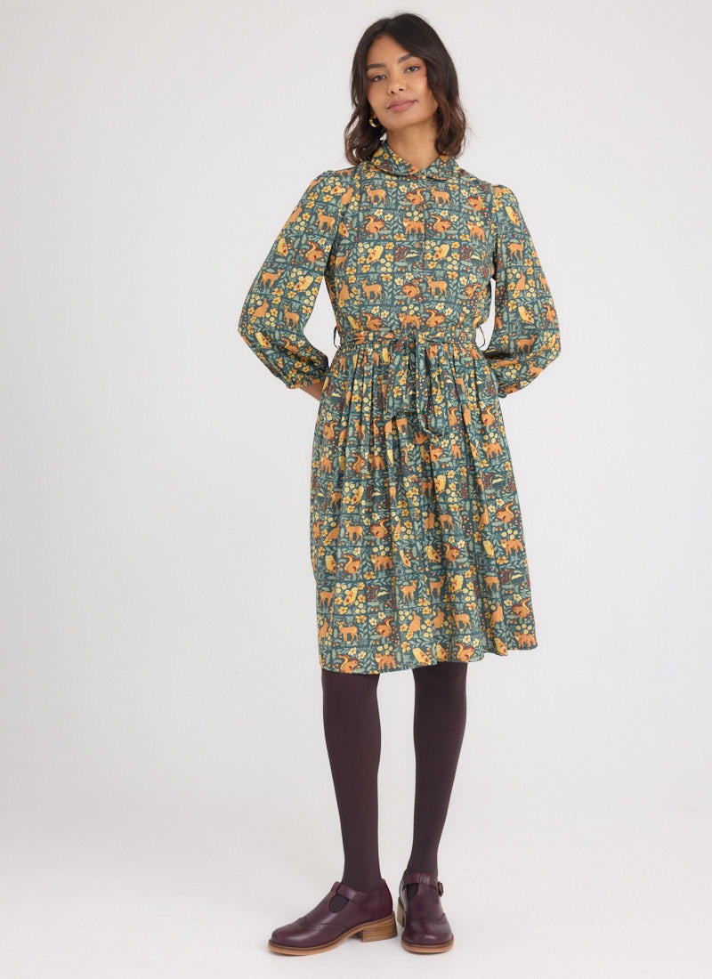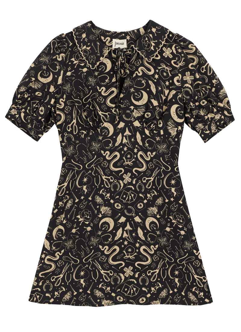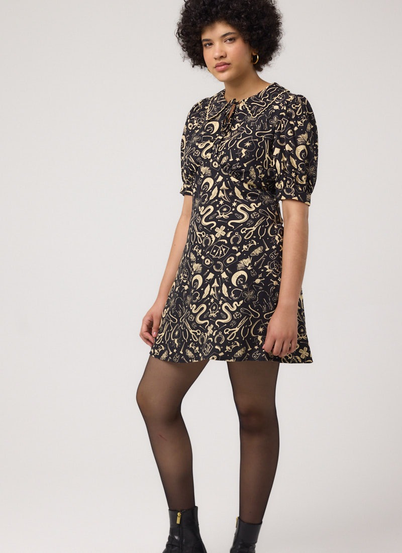 Hattie Whimsical Macabre Print Tie Neck Dress