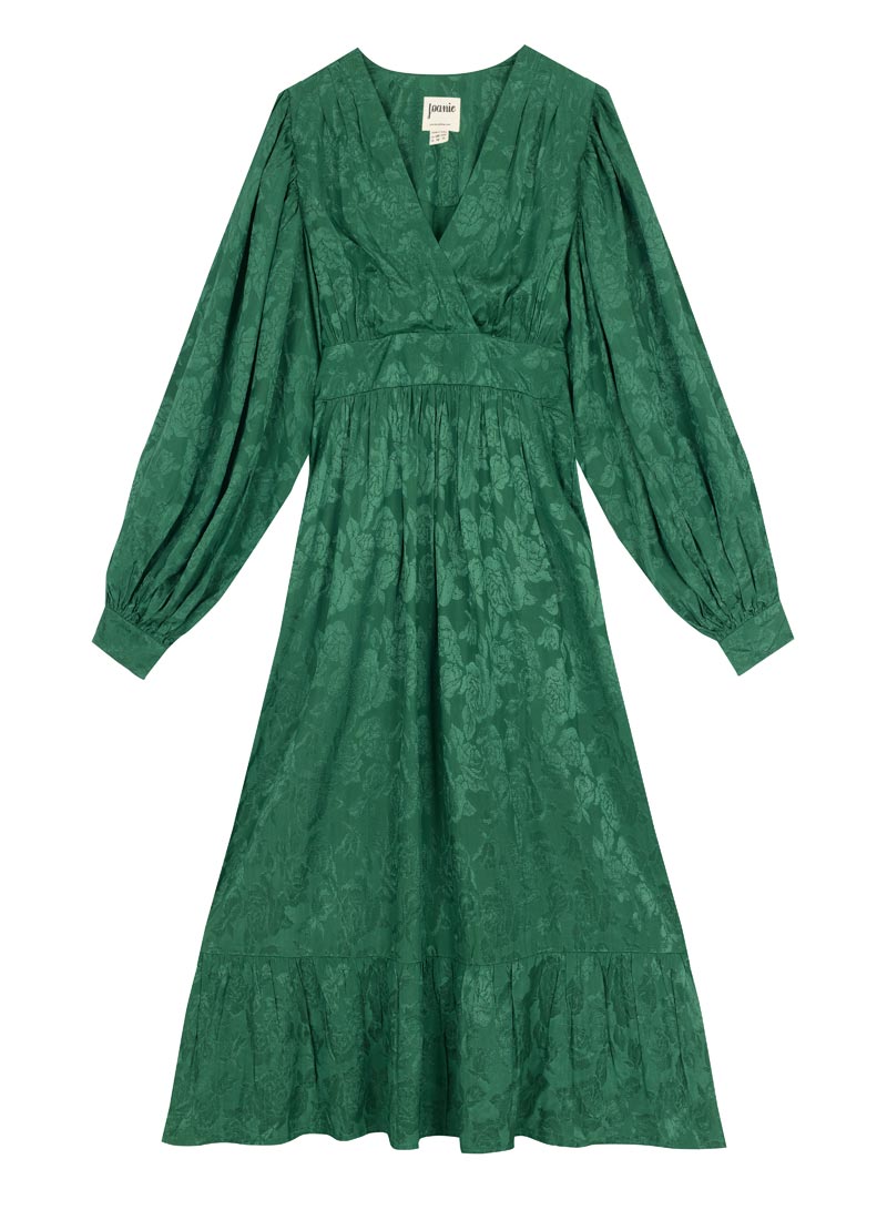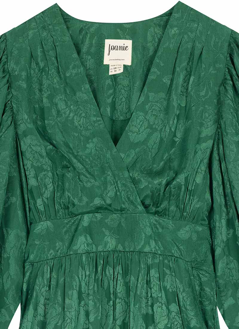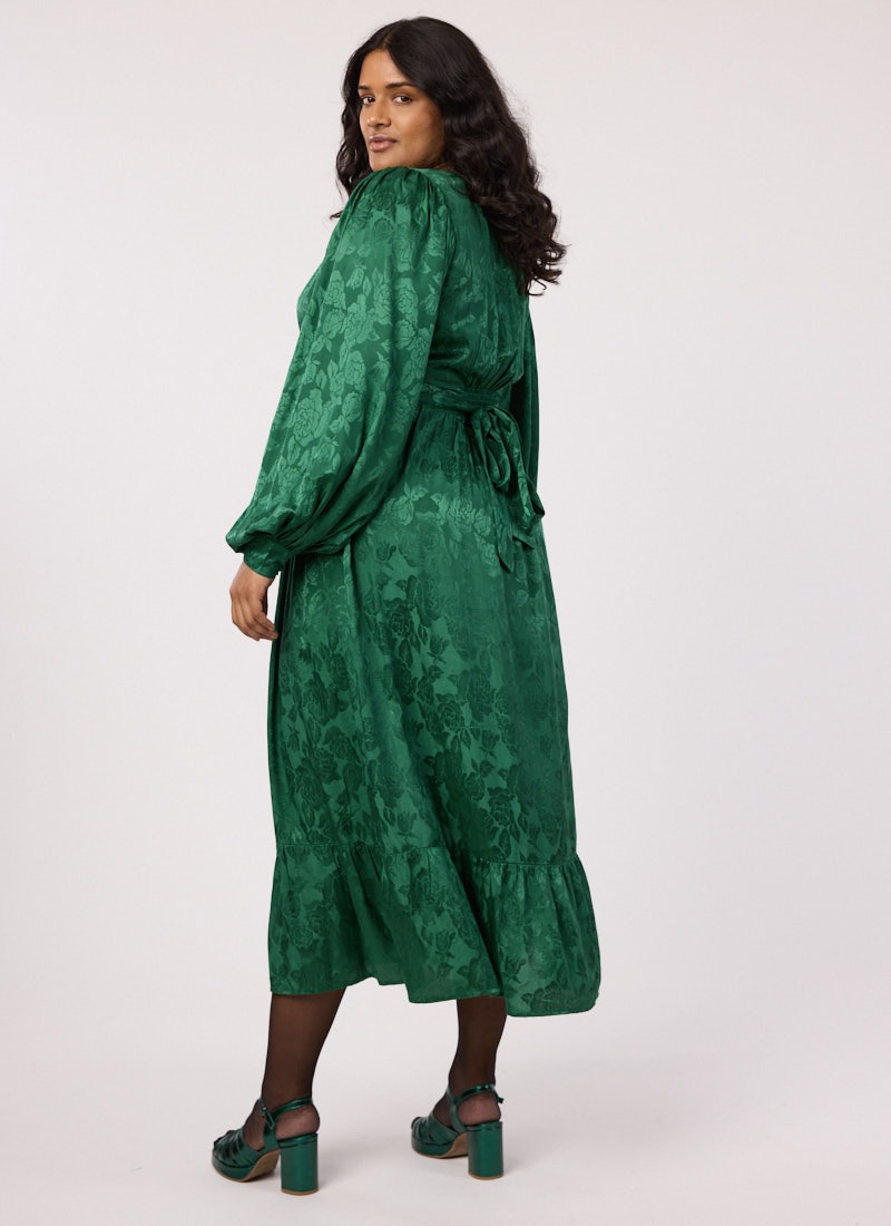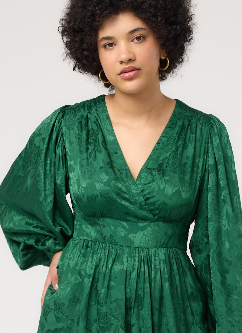 Victoria Floral Damask Balloon Sleeve Midaxi Dress - Green