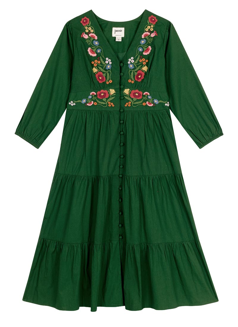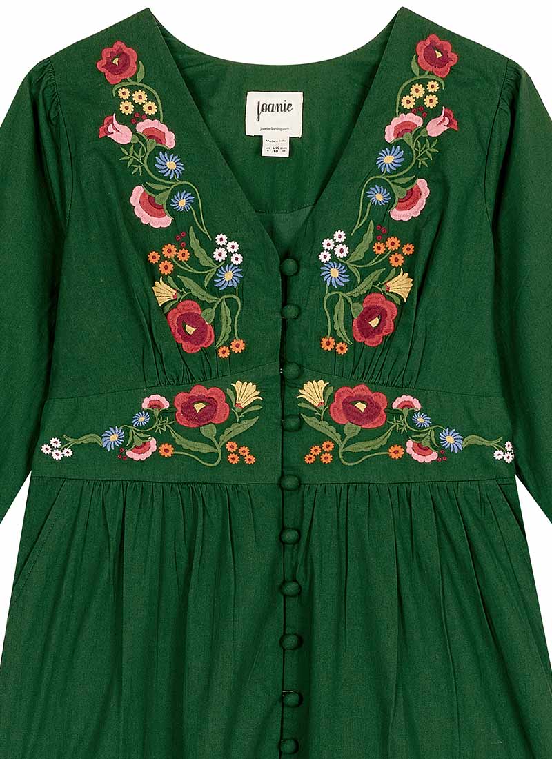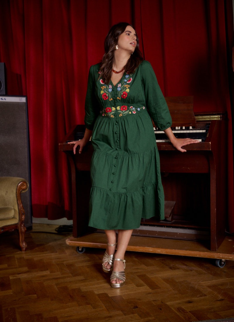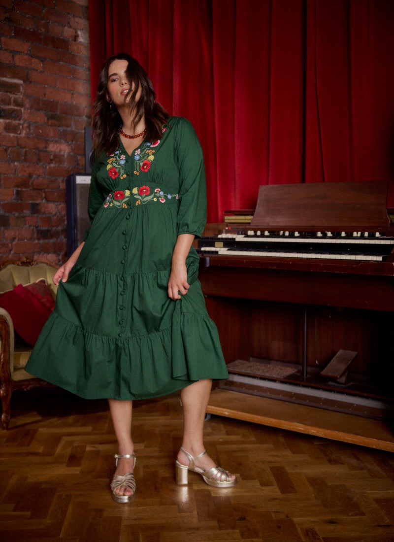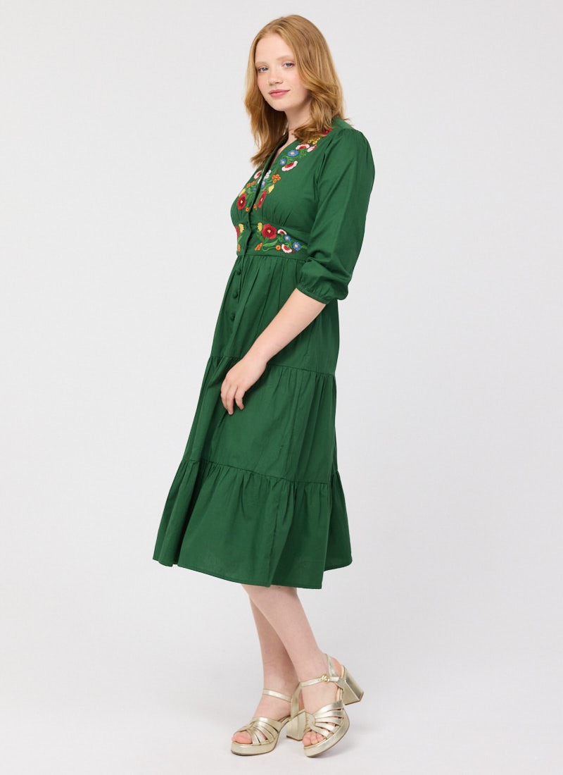 Victoria Floral Damask Balloon Sleeve Midaxi Dress - Green
