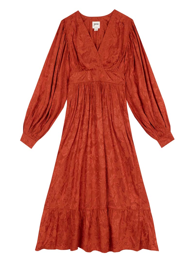 Victoria Floral Damask Balloon Sleeve Midaxi Dress - Clay