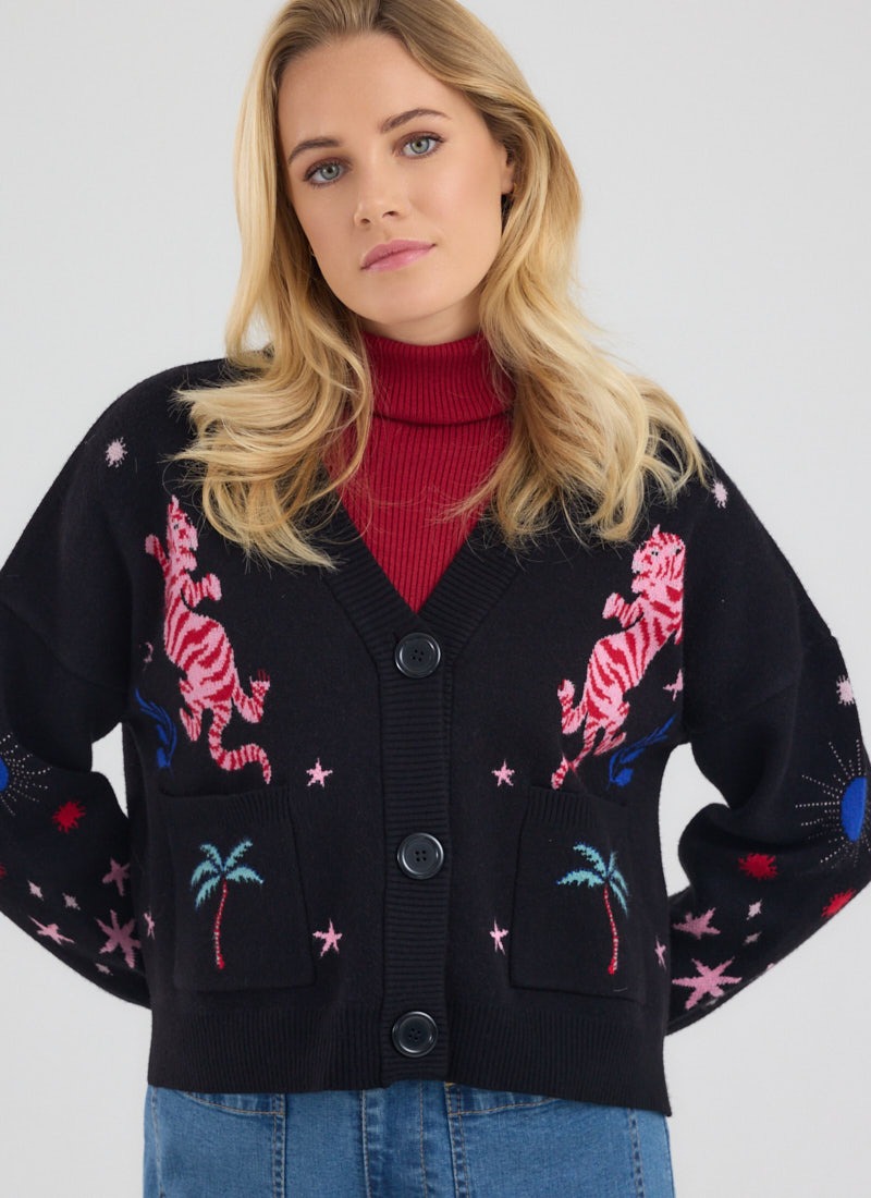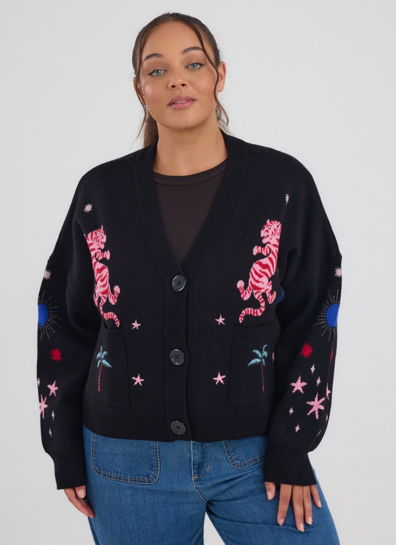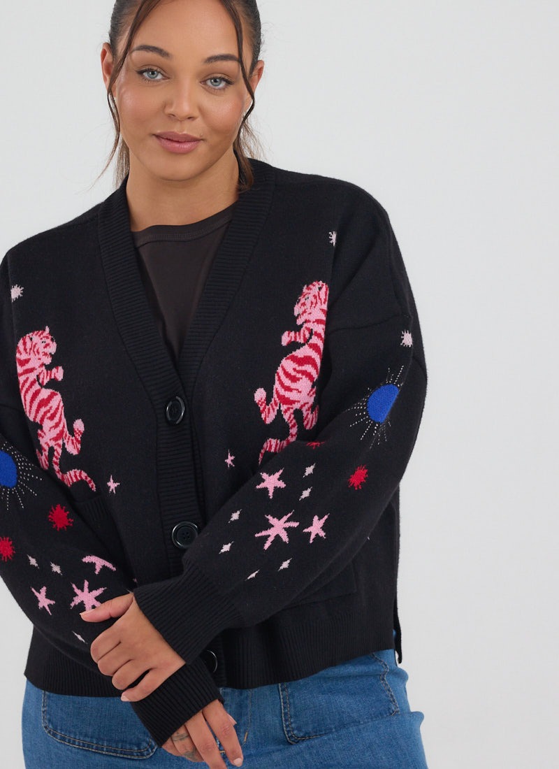 Kiri Tiger Intarsia Knit Oversized Cardigan
