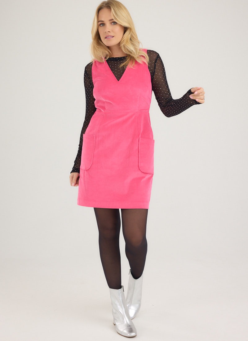 Ohlson V-Neck Corduroy Pinafore Dress - Hot Pink
