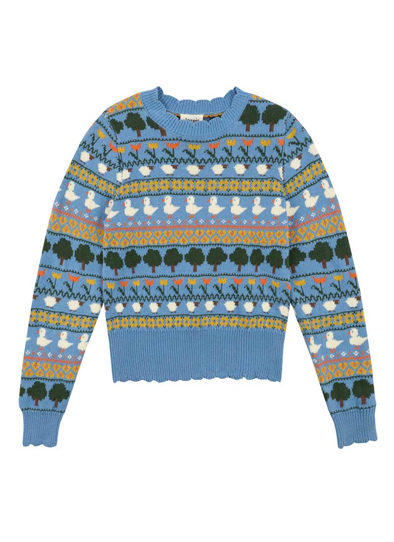 Clarence Farmyard Fair Isle Scalloped Knitted Jumper