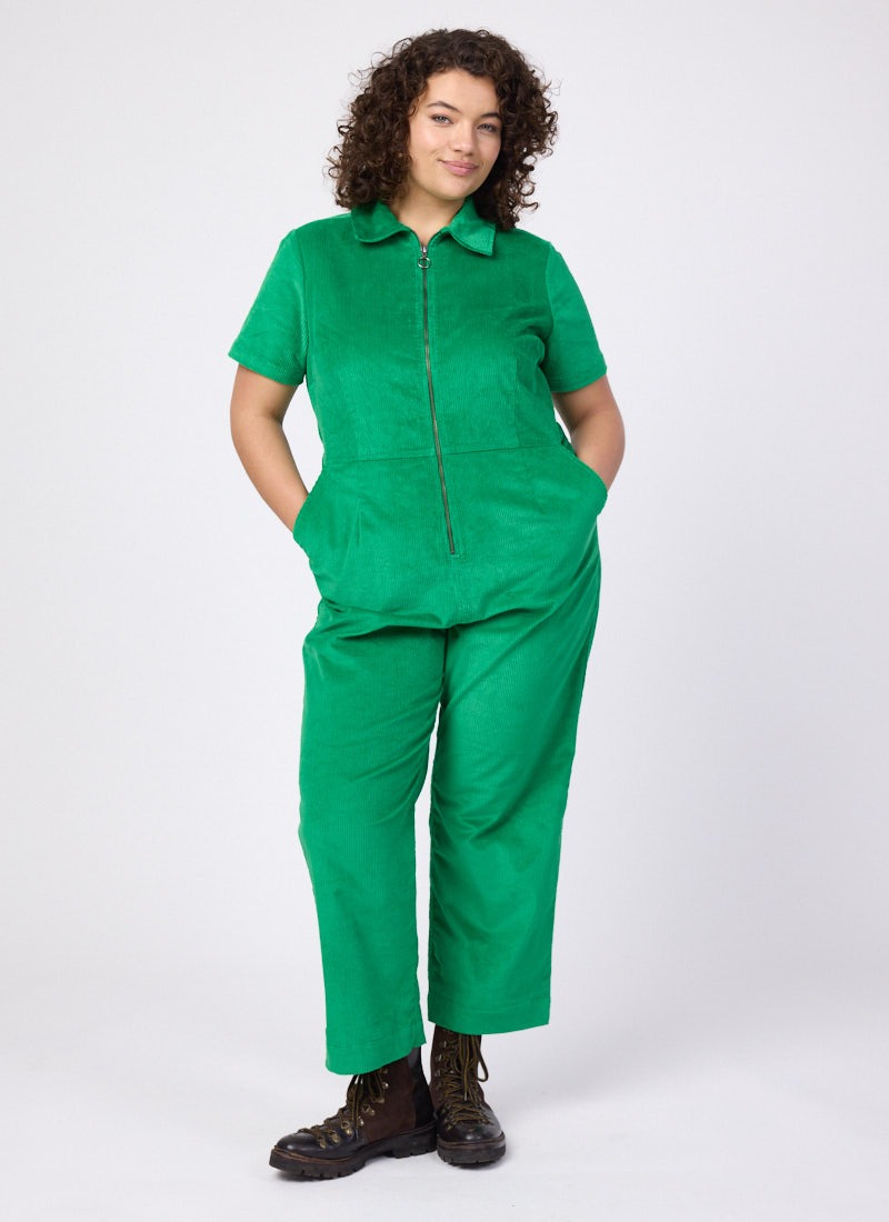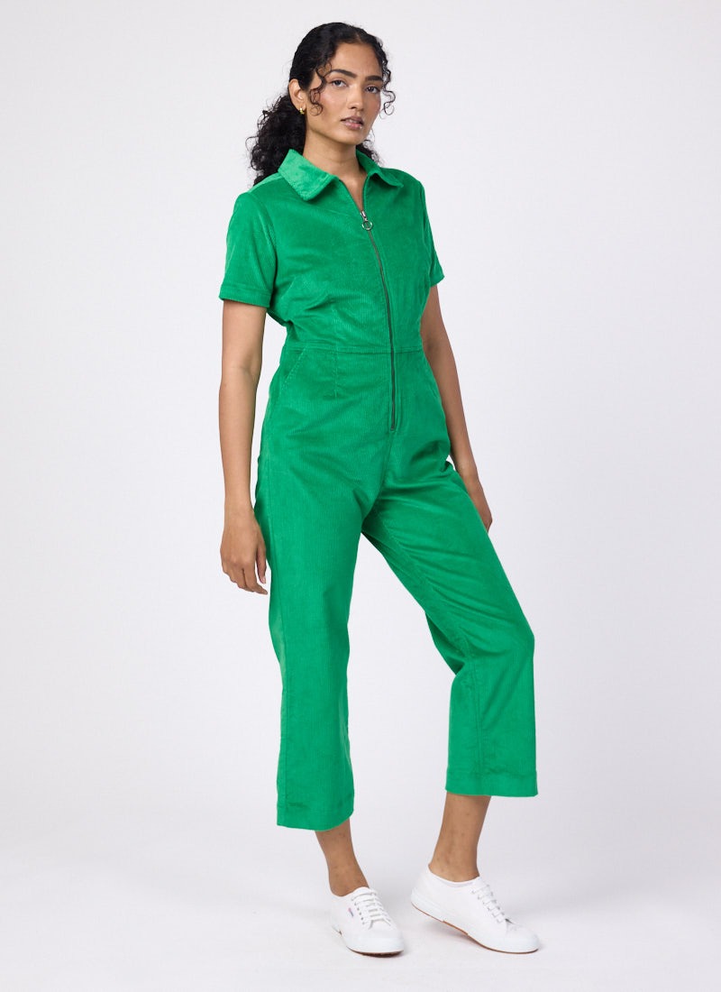 Robin Short Sleeve Corduroy Boilersuit - Bright Green