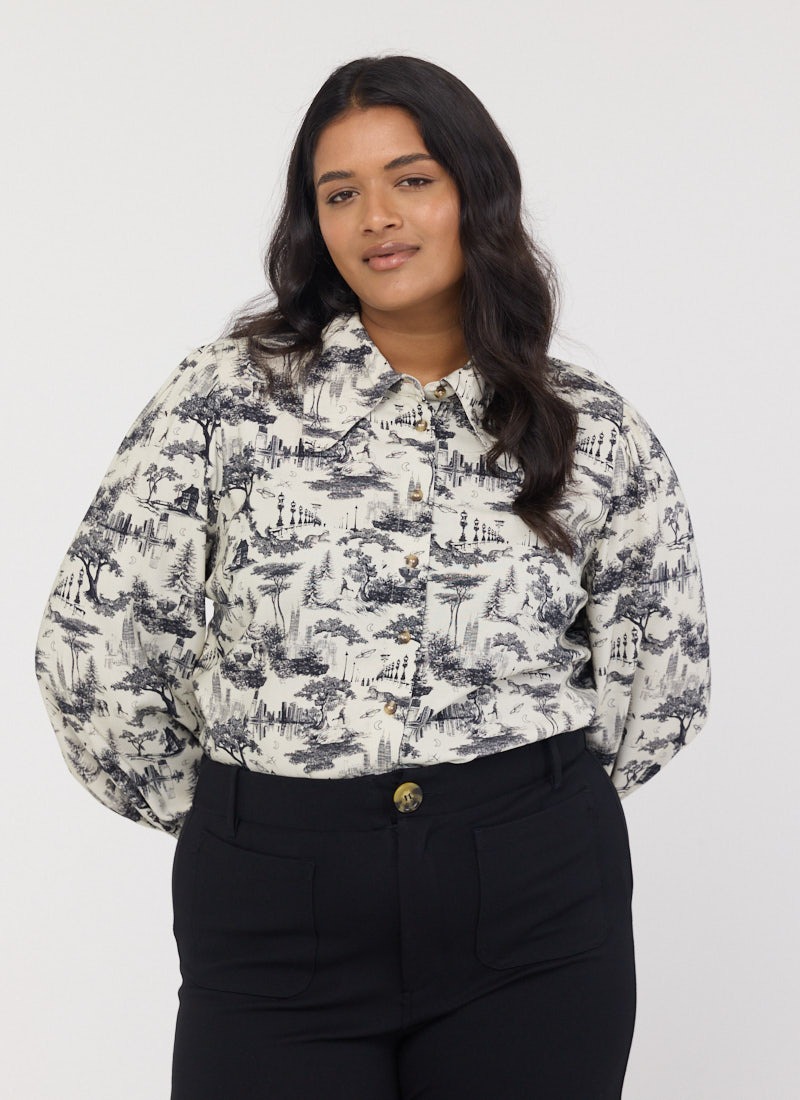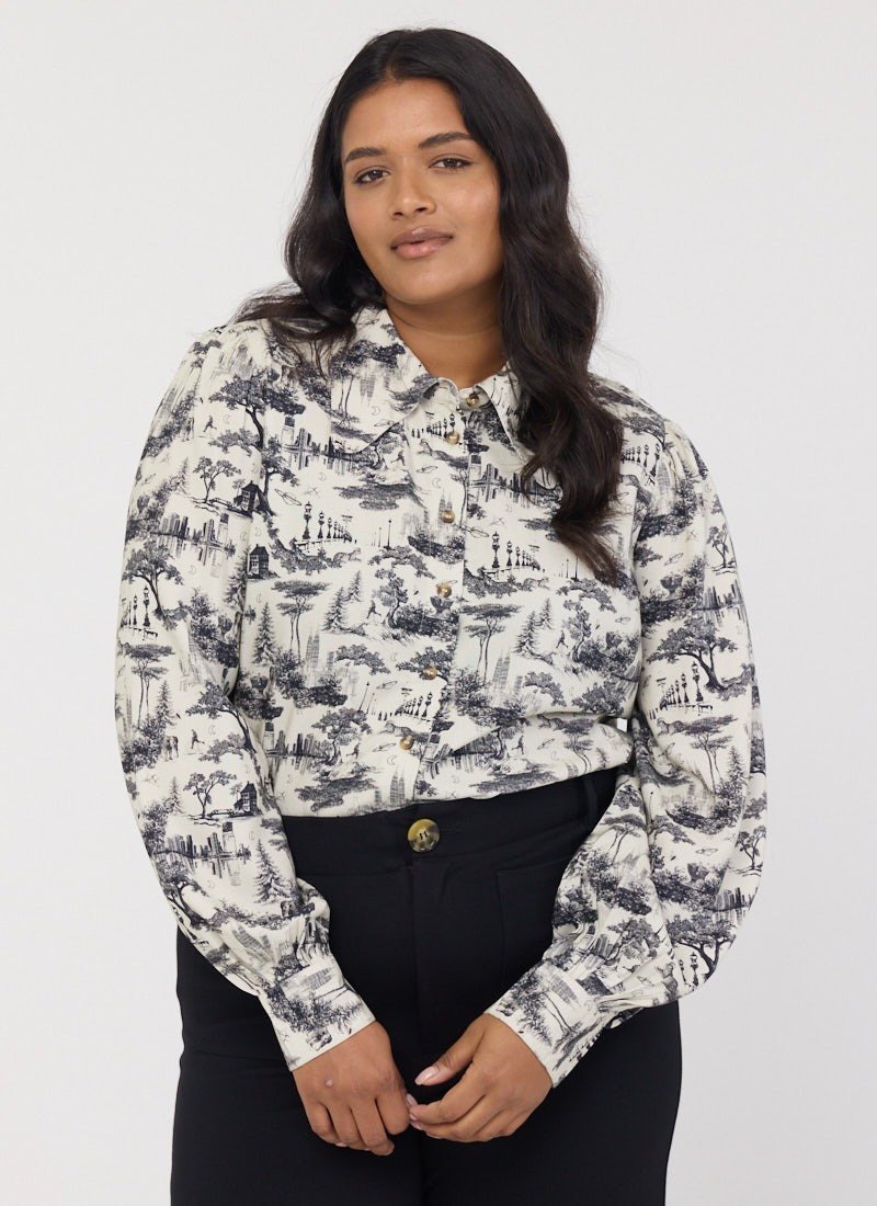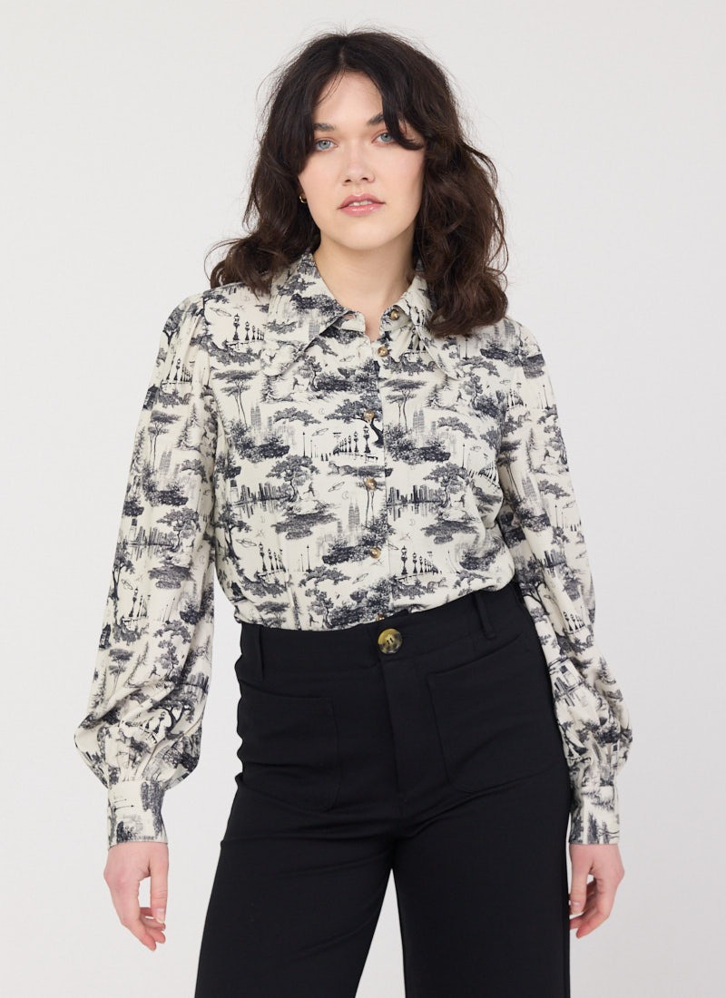 Alba Jungle Toile Print Peter Pan Collar Blouse