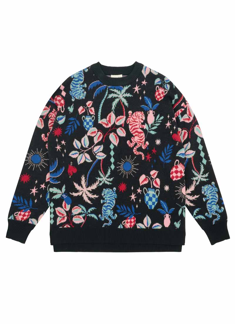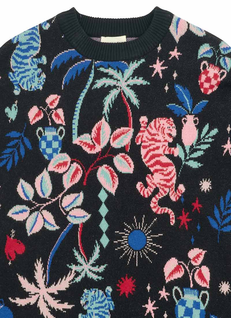 Sydney Tropical Tiger Intarsia Knit Oversized Jumper