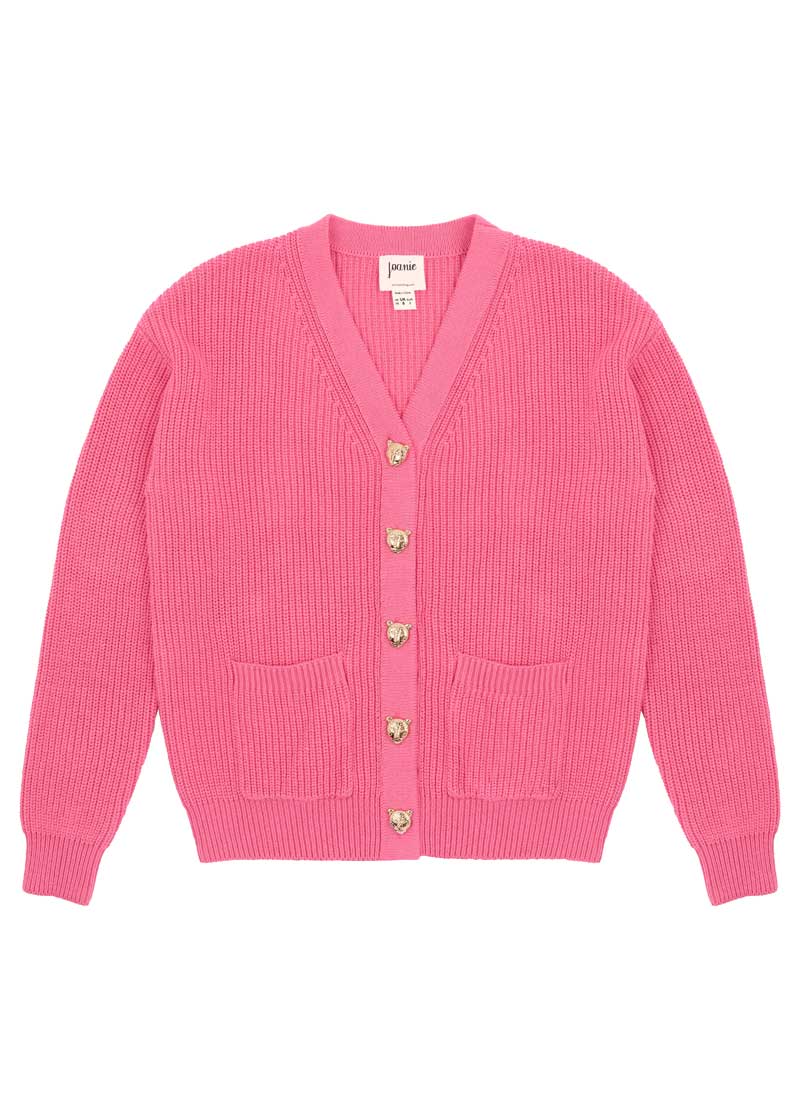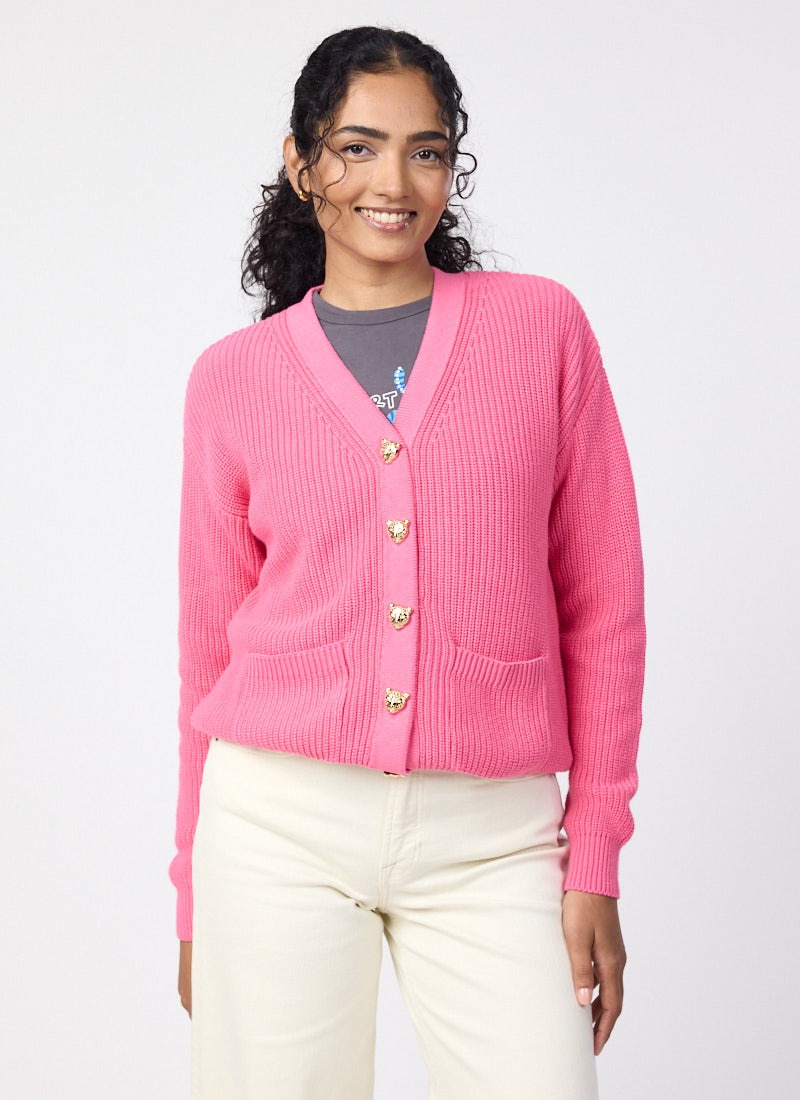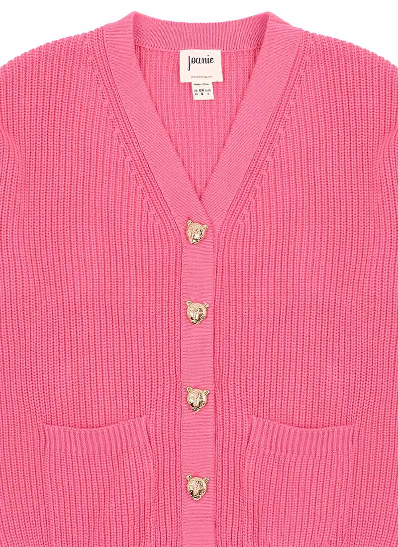 Piper Leopard Button Chunky Knitted Cardigan - Pink