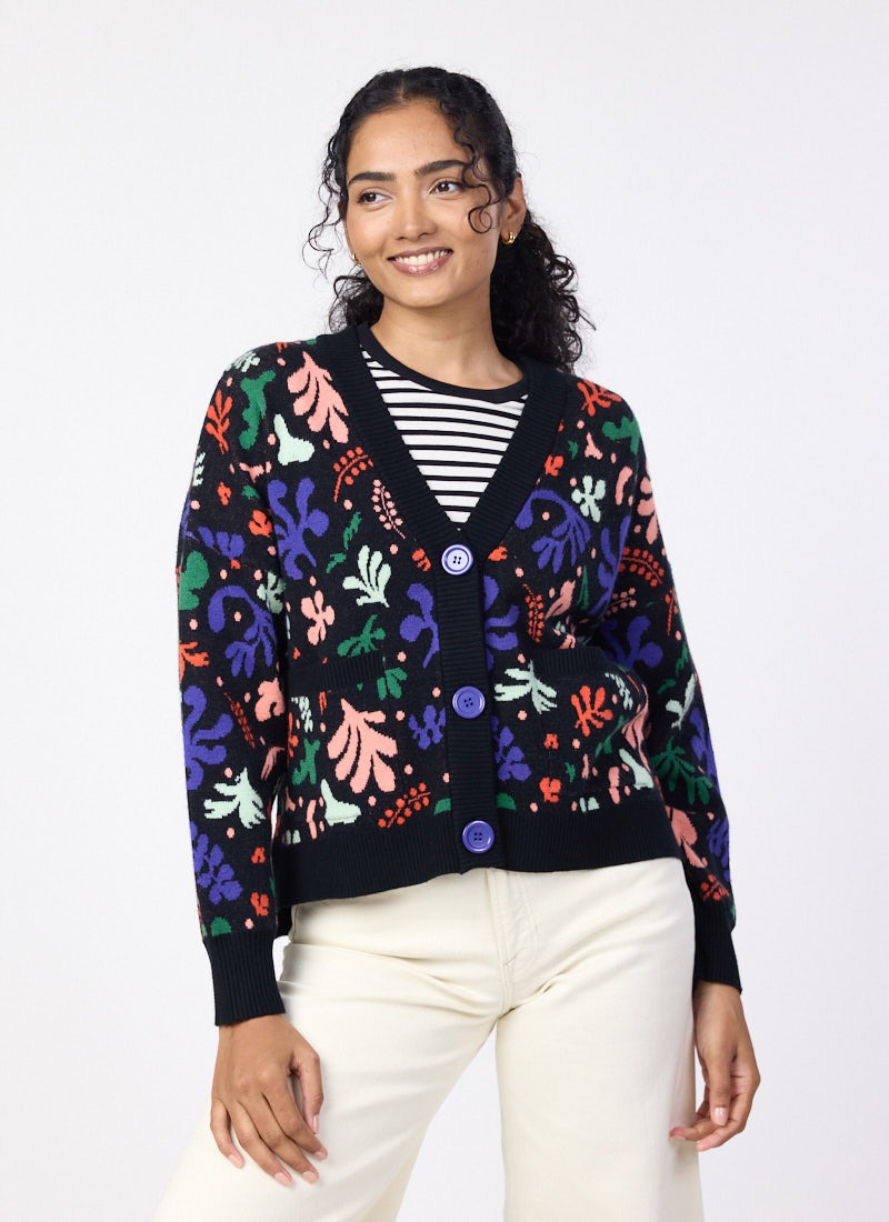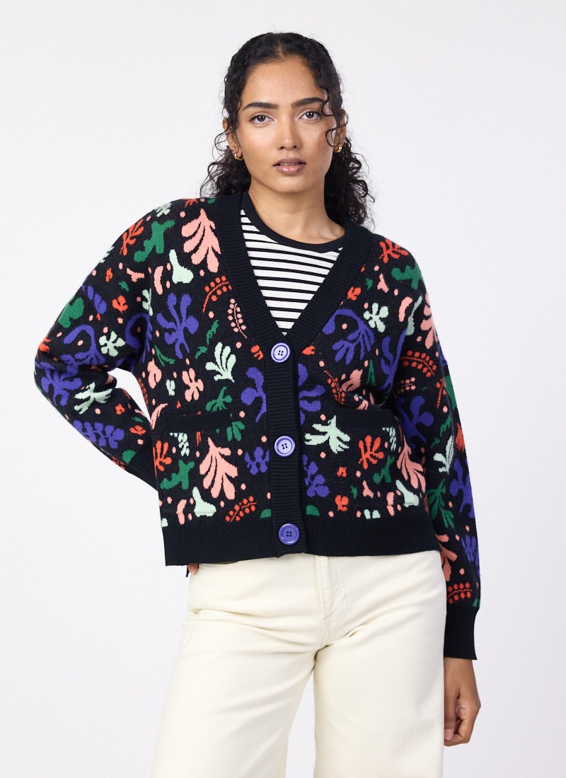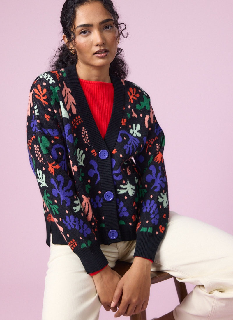 Lovelace Modern Art Cut Out Intarsia Oversized Cardigan