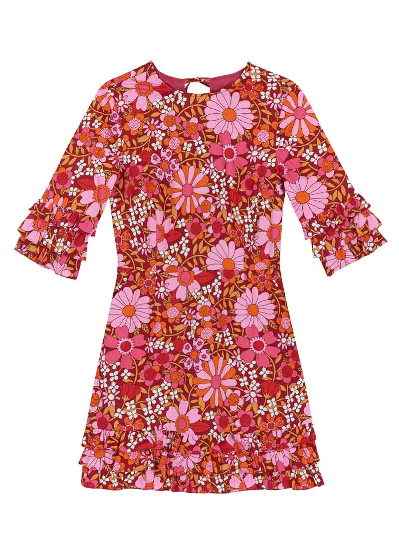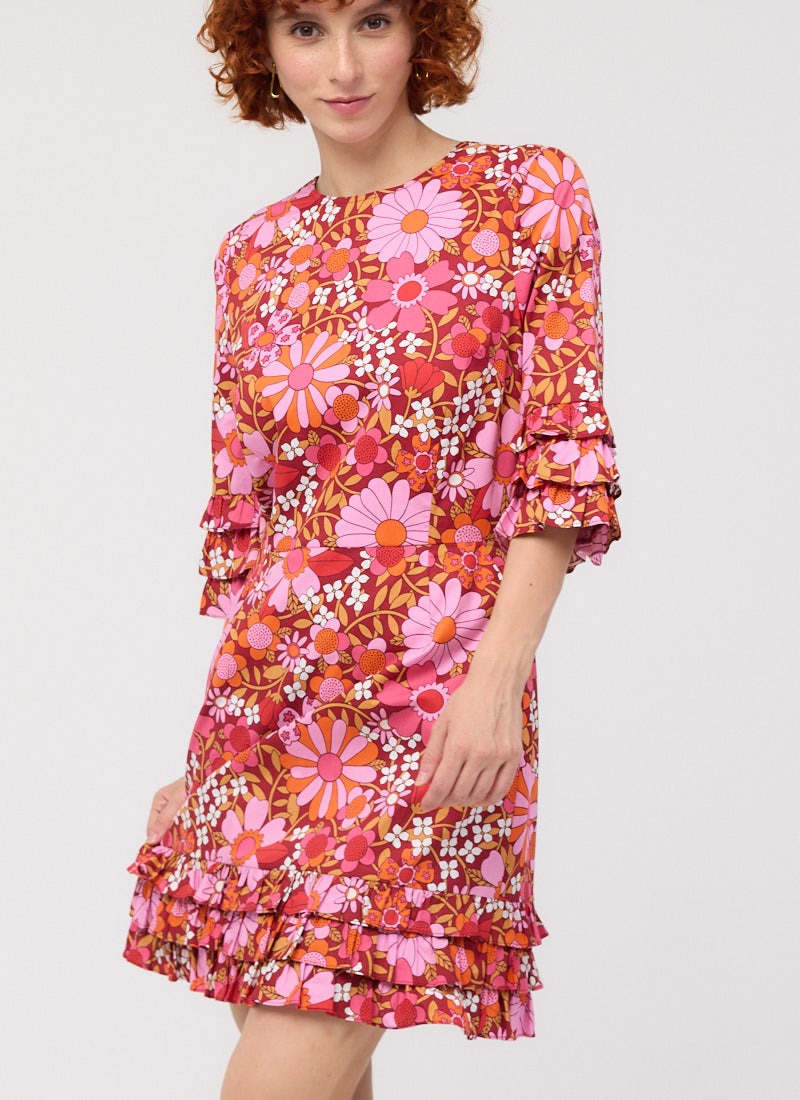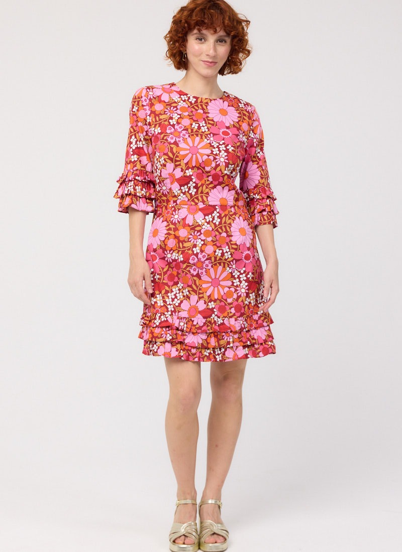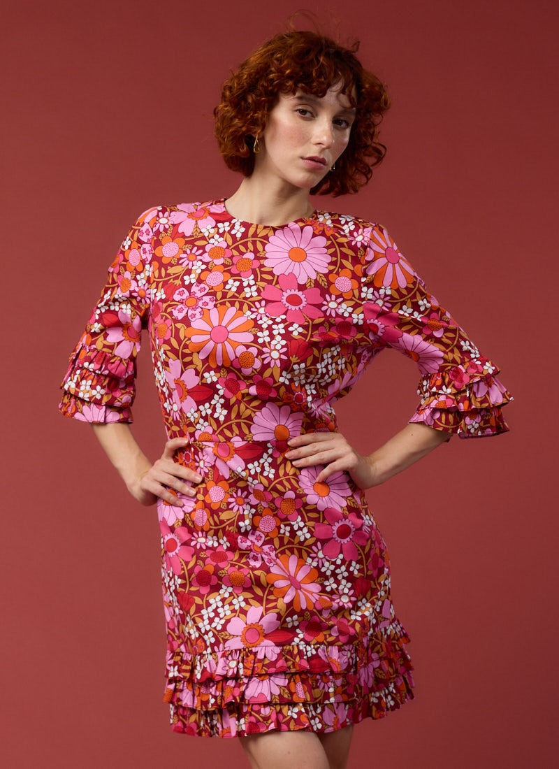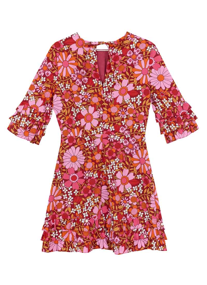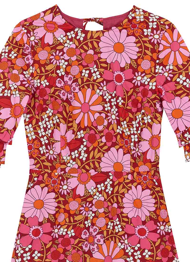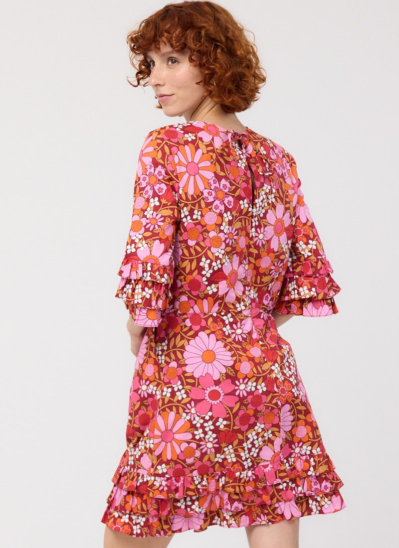 Katy Deckchair Floral Print Ruffle Sleeve Mini Dress