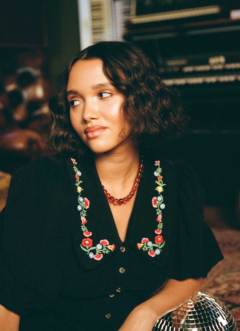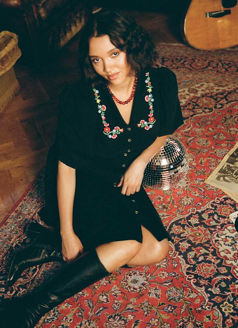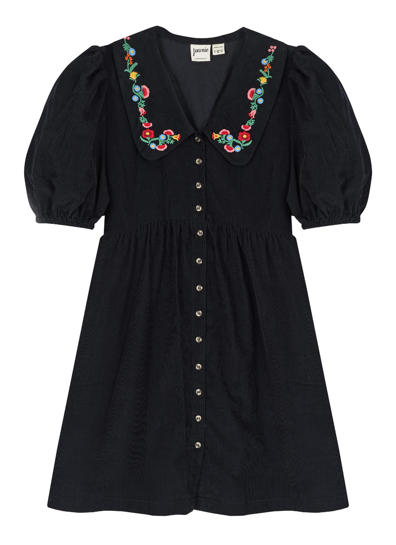 Felicity Embroidered Collar Corduroy Mini Dress - Black