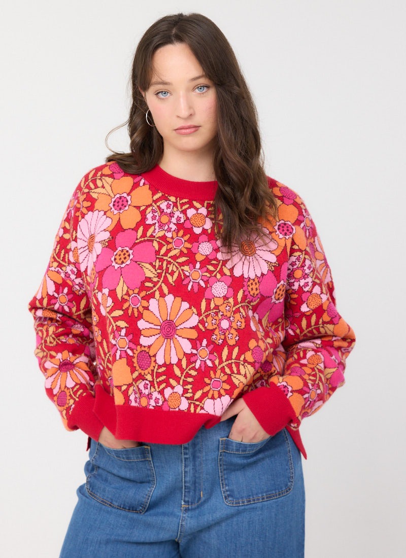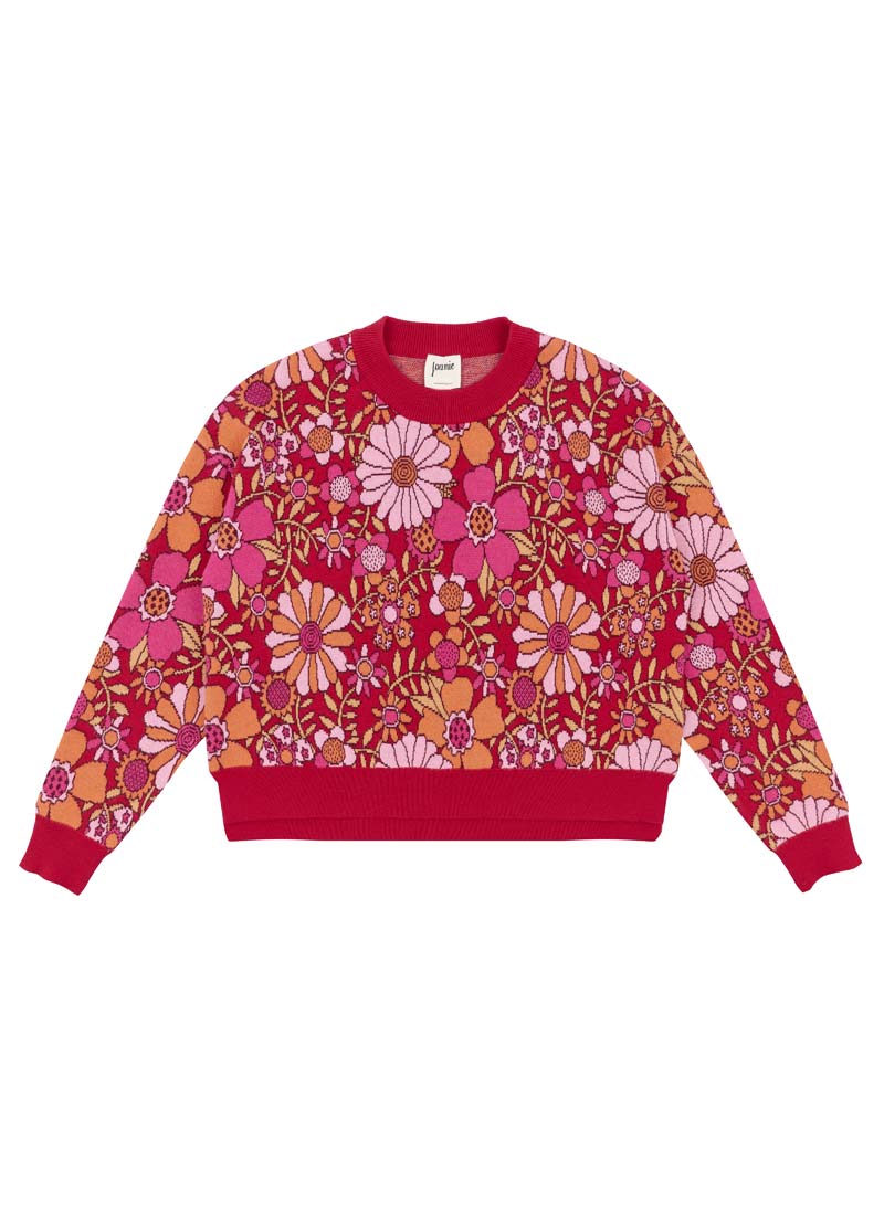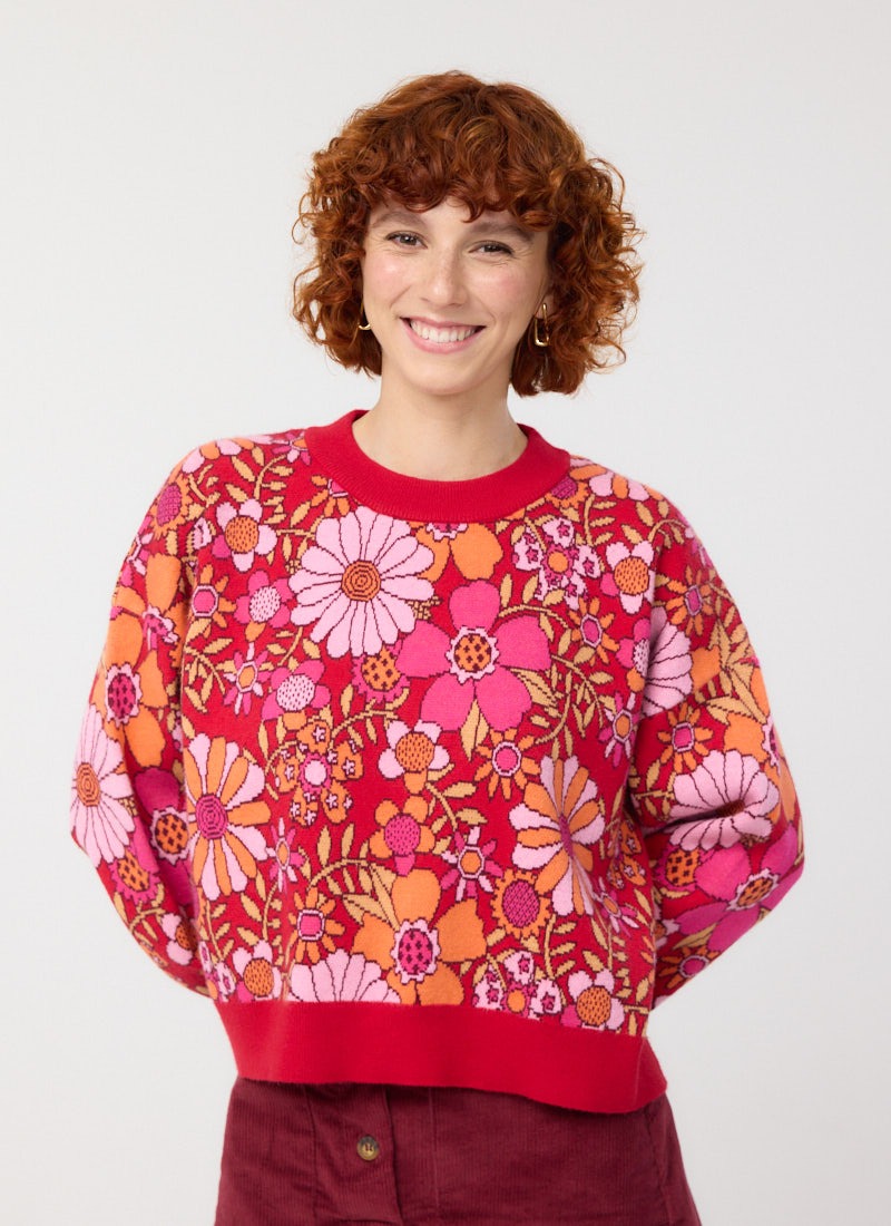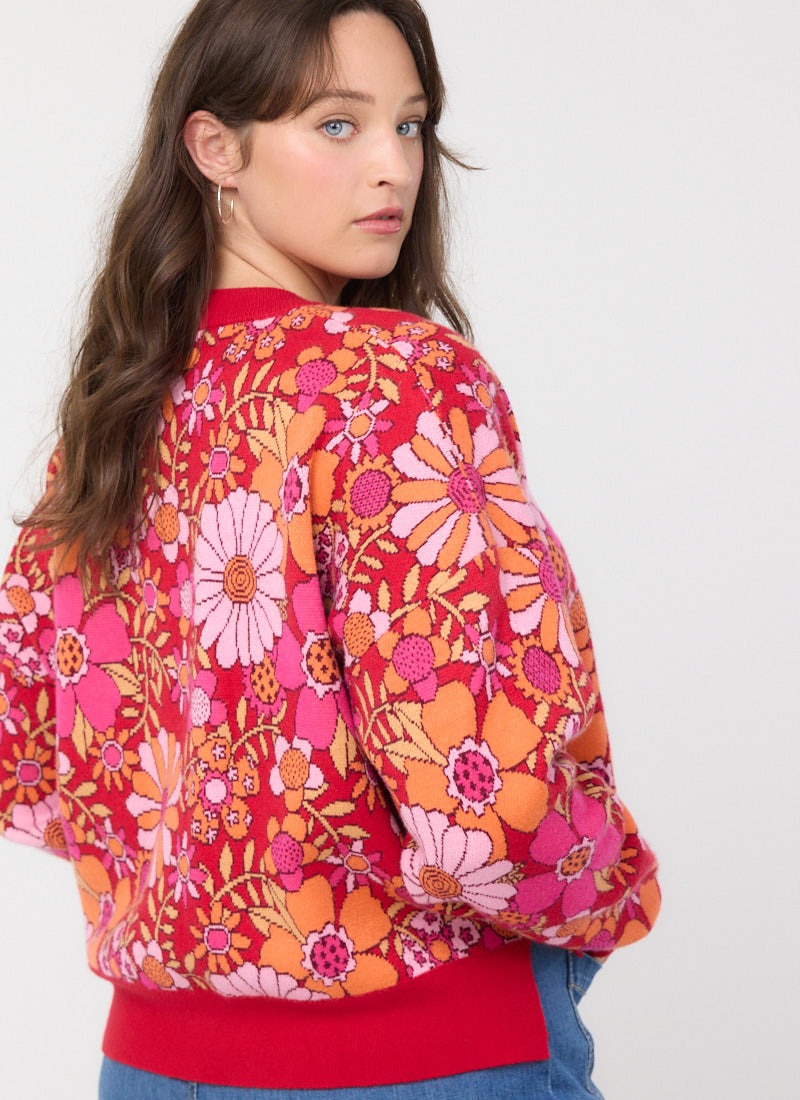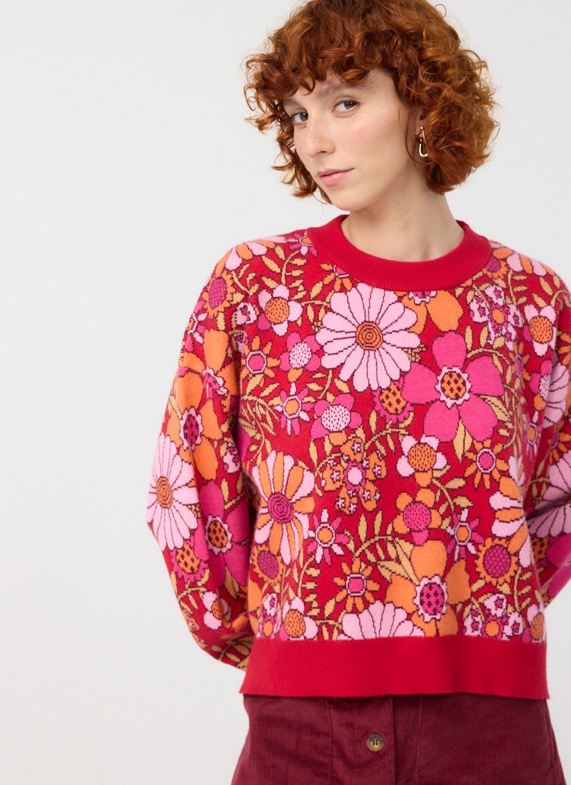 Javan Red Deckchair Floral Intarsia Knitted Jumper