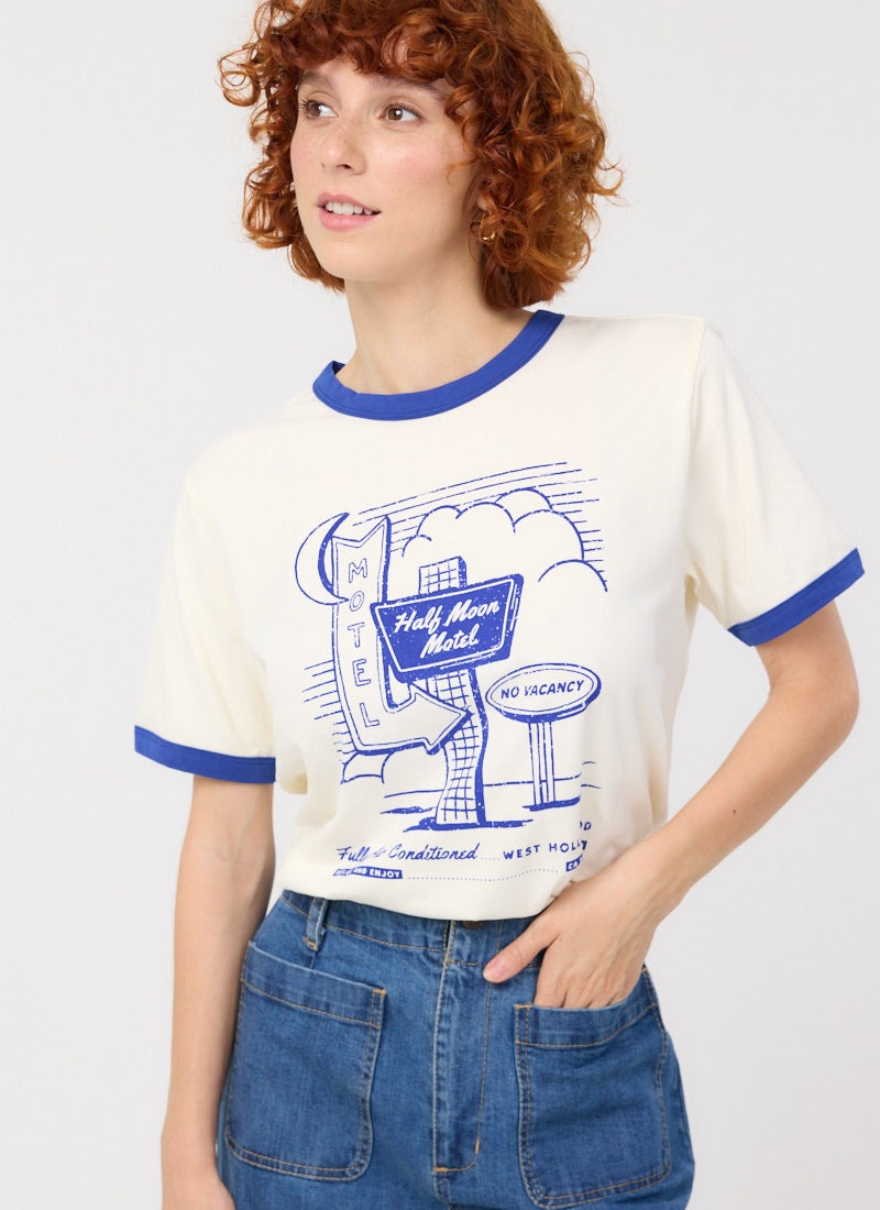 Mollie Half Moon Motel Graphic Ringer Tee