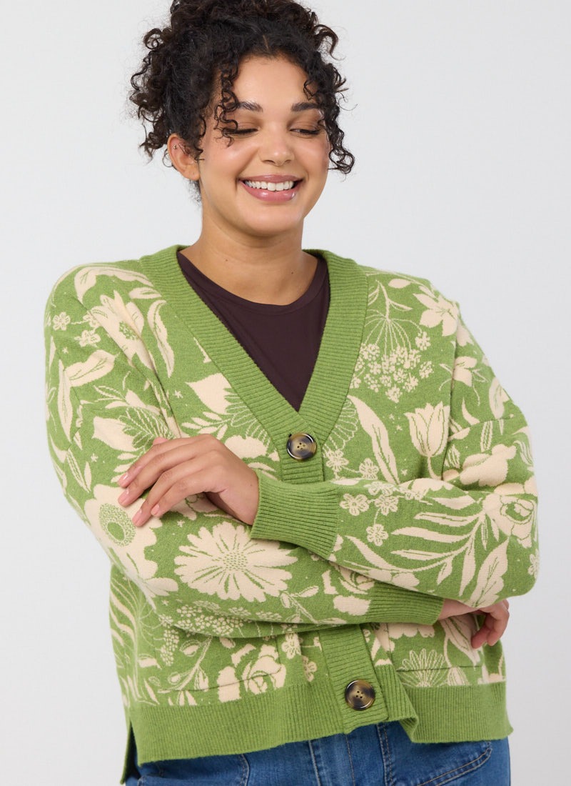 Lovelace Dried Flowers Intarsia Oversized Cardigan