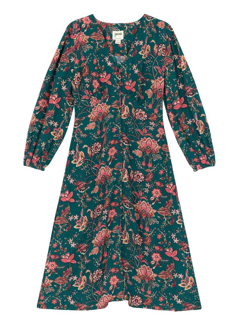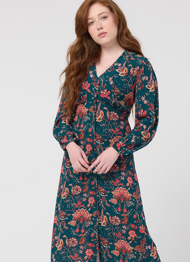 Sandra Jacobean Floral Print Long Sleeve Midi Dress
