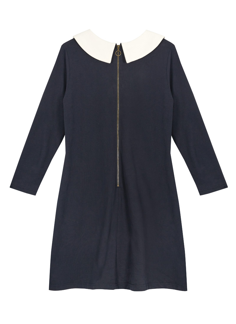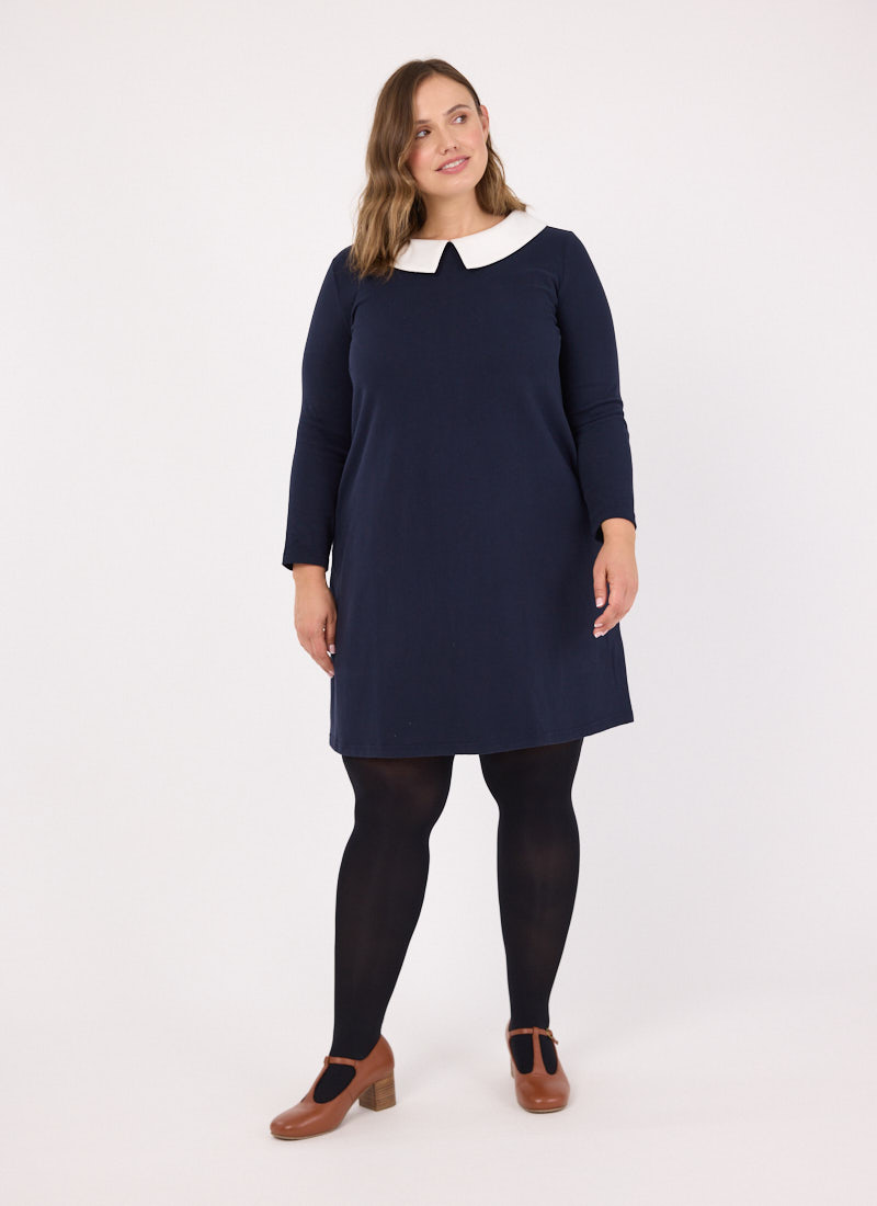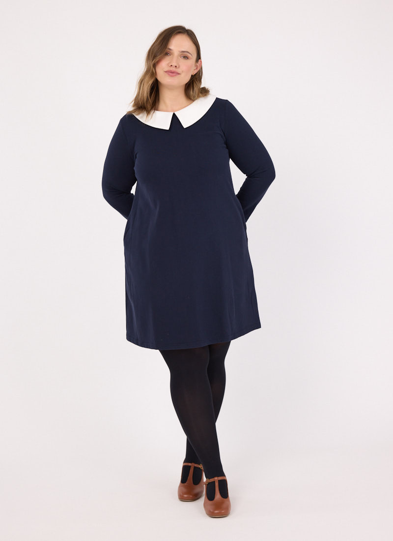 Suzy Contrast Collar Jersey Swing Dress - Navy