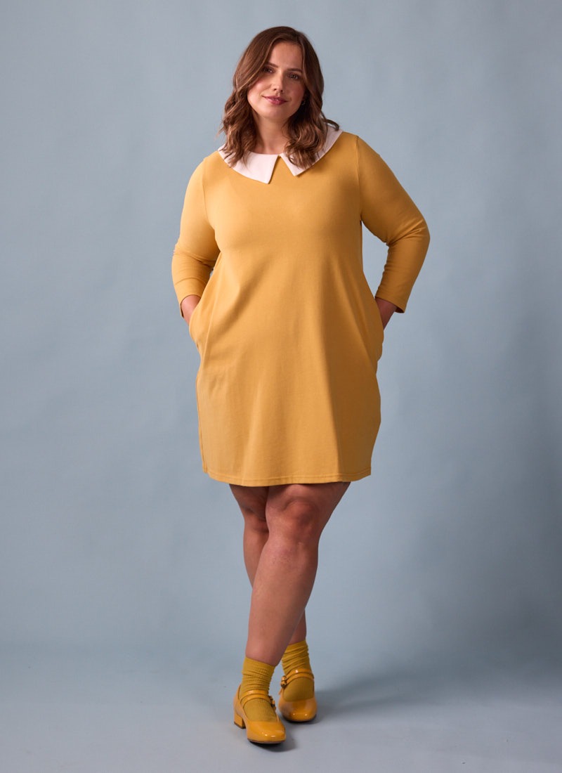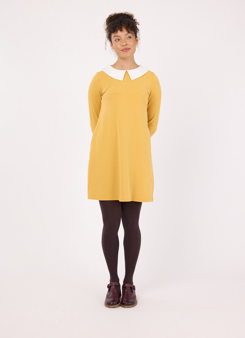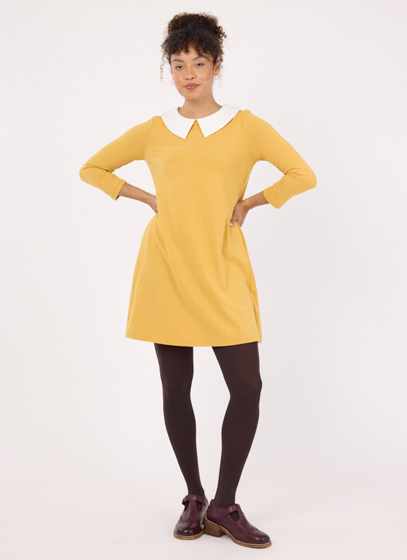 Suzy Contrast Collar Jersey Swing Dress - Mustard