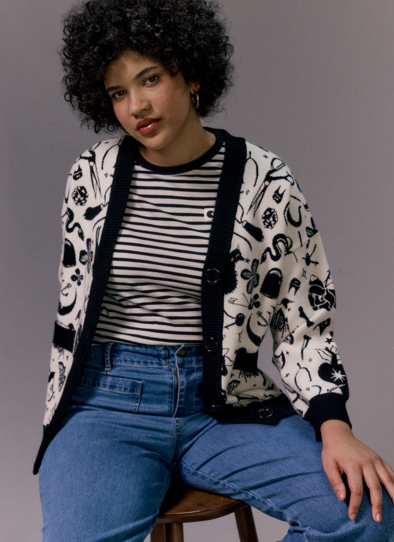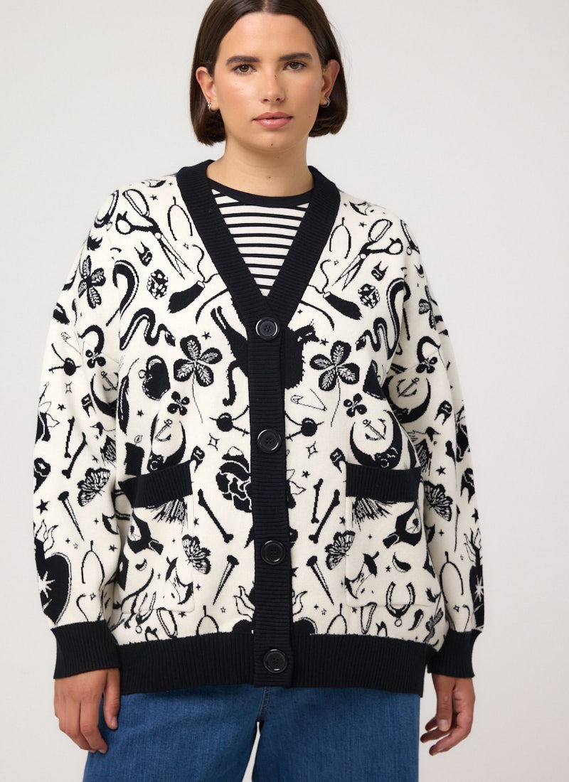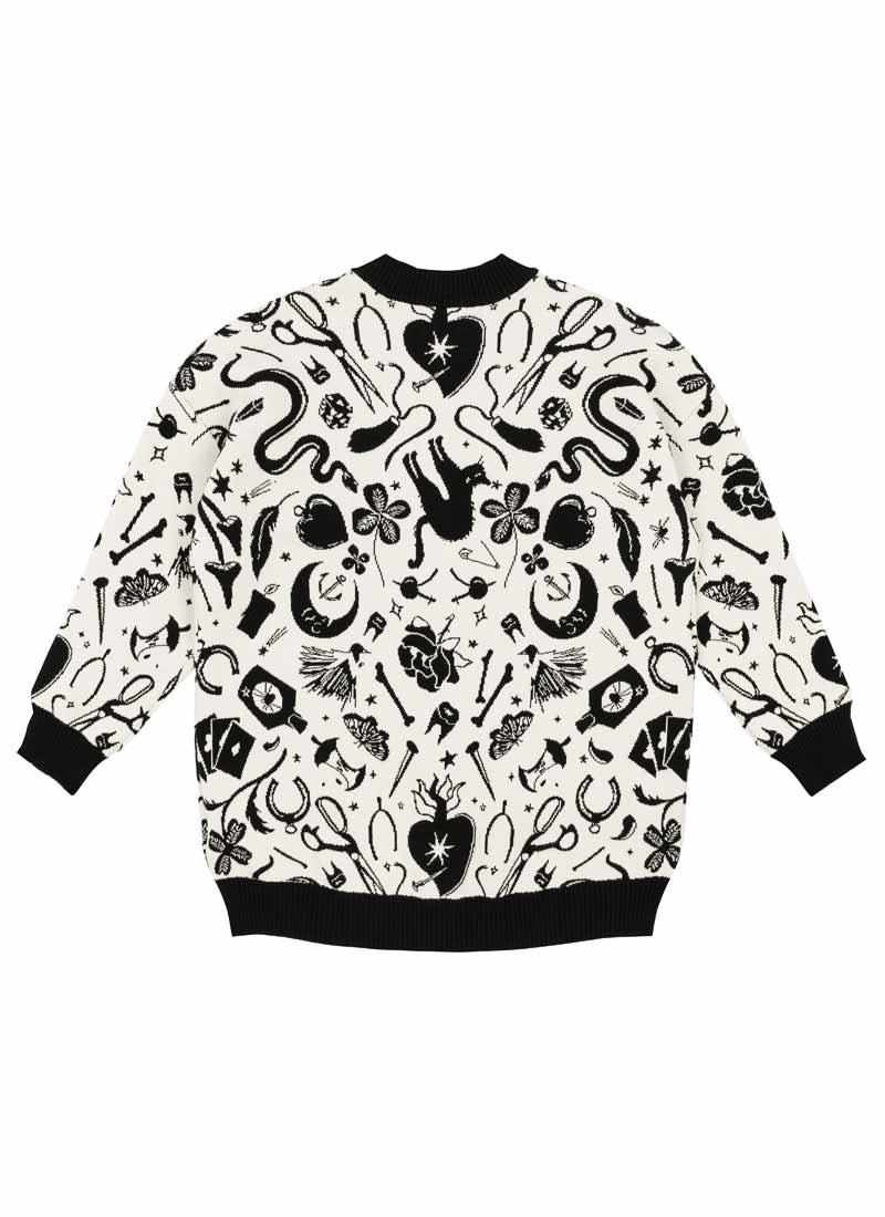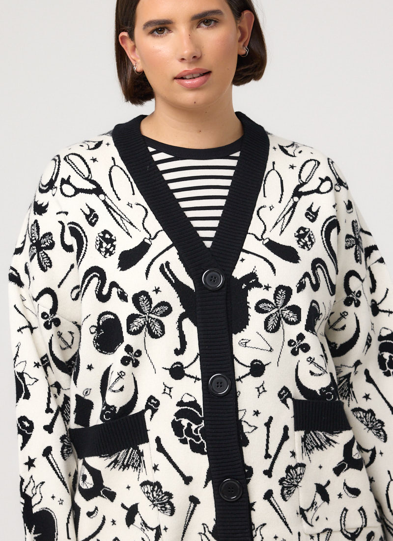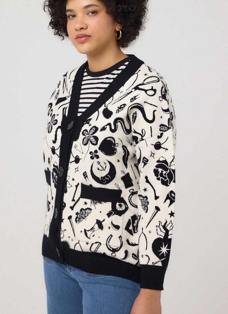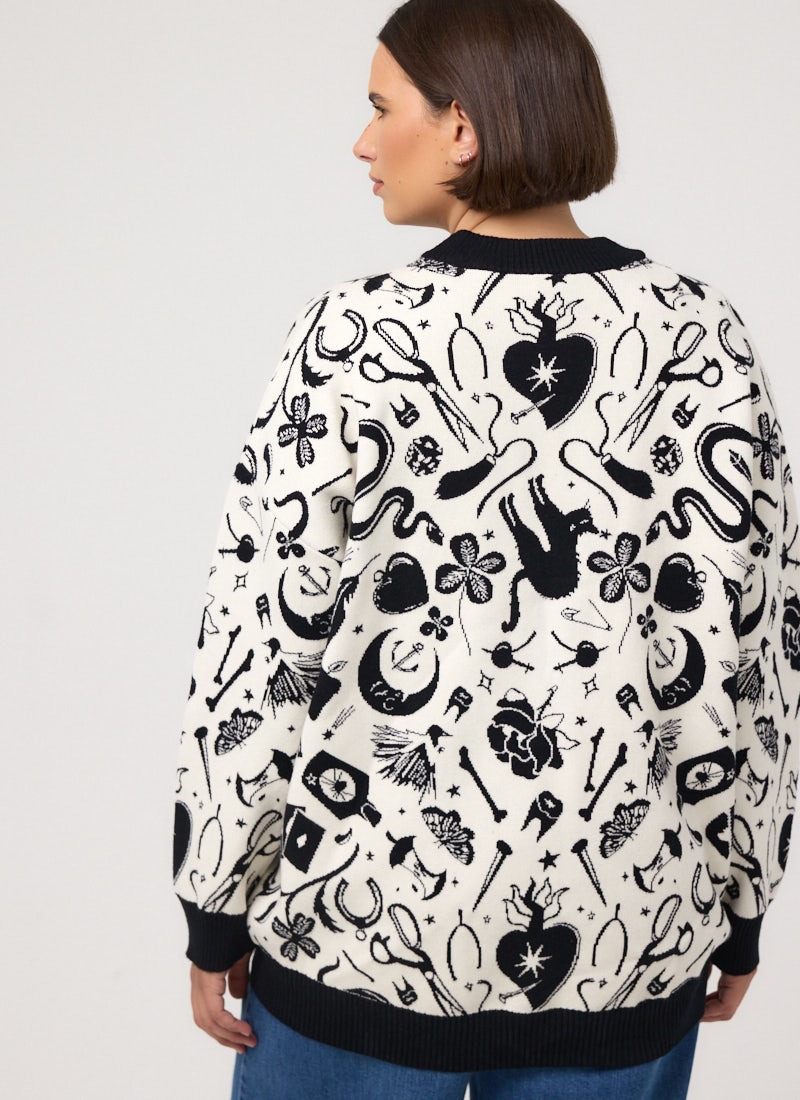 Cosmo Macabre Intarsia Oversized Knitted Cardigan