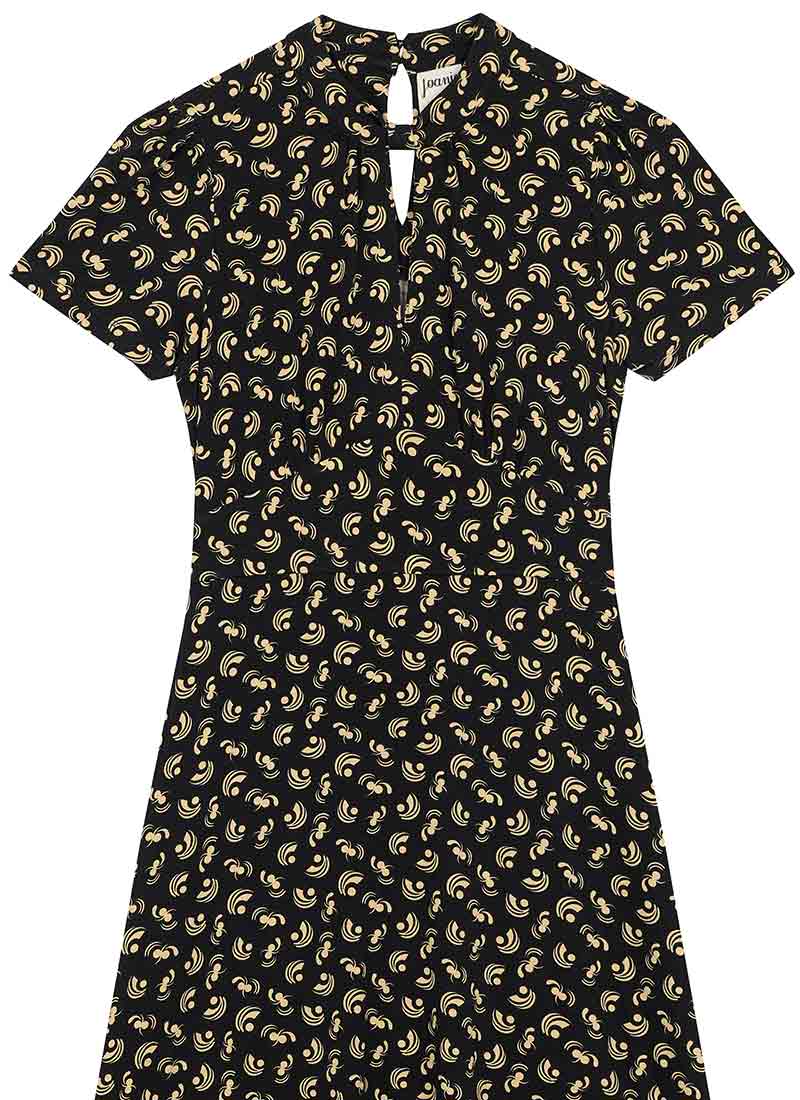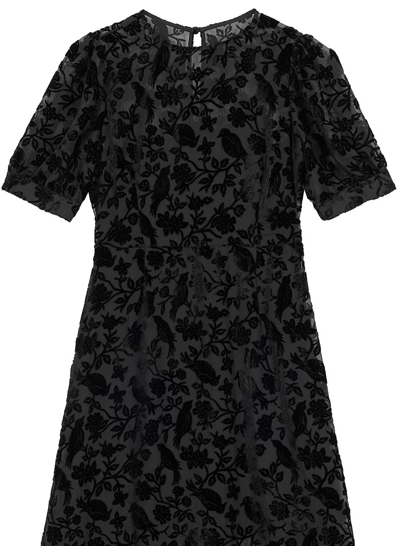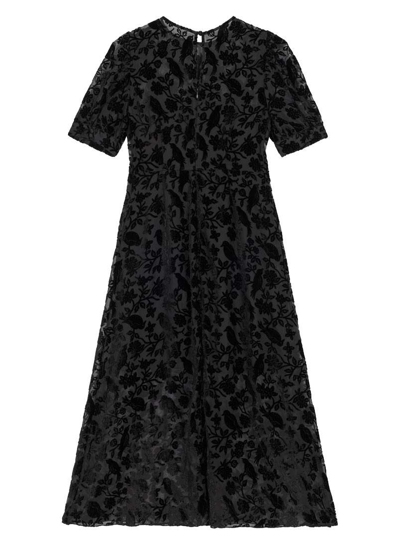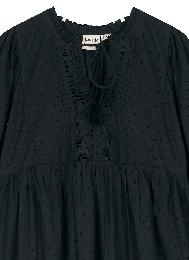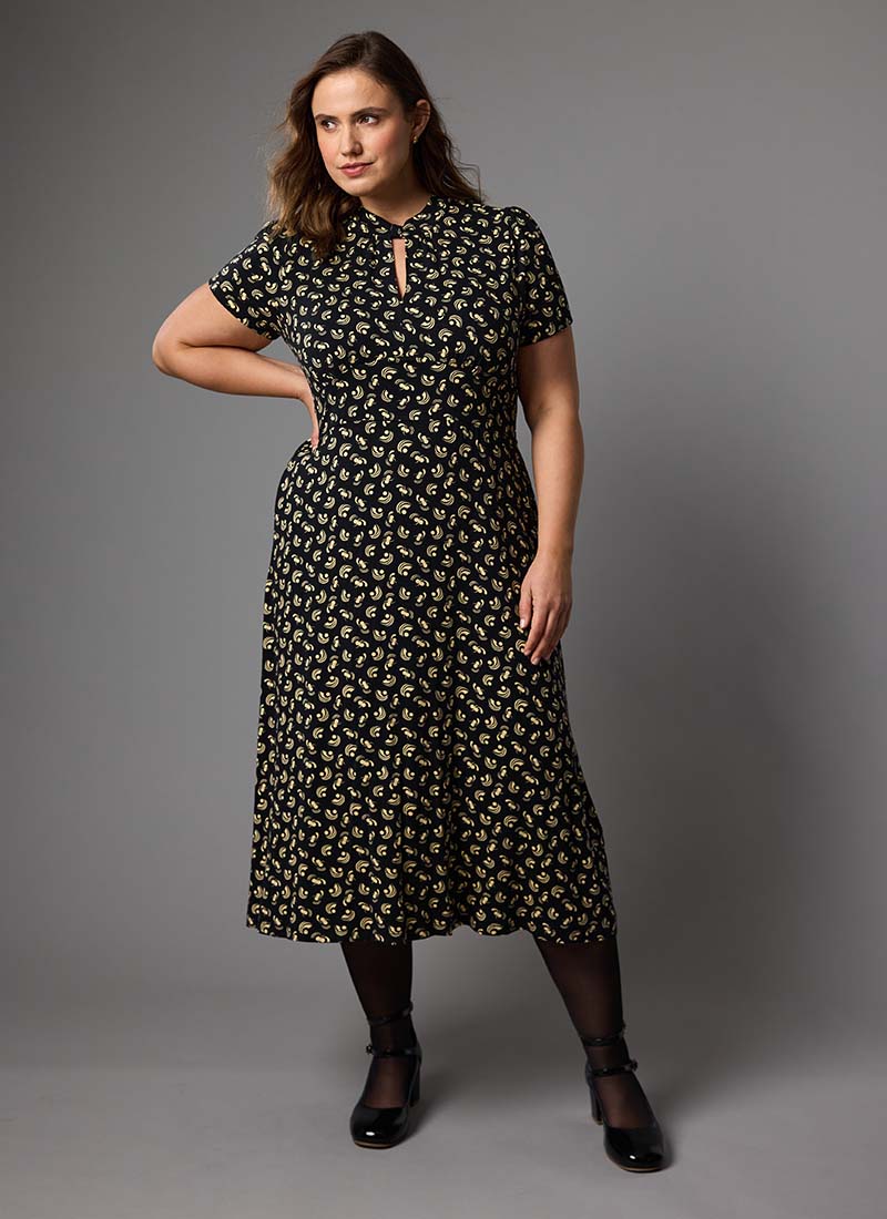 Meryl Tie Neck Dobby Midi Dress - Black