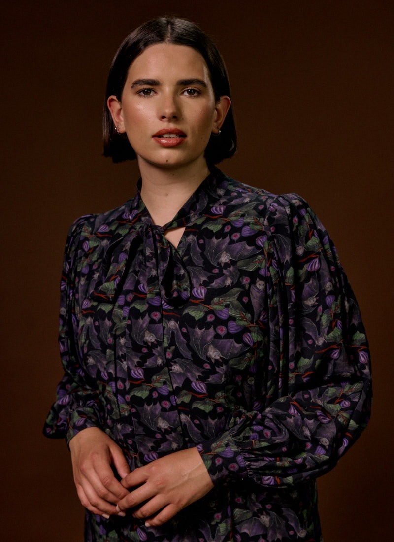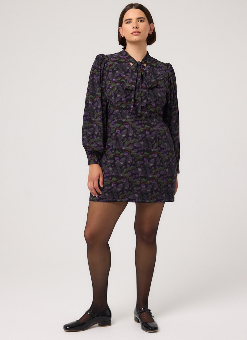 Nolly Bat Print Pussy Bow Mini Dress