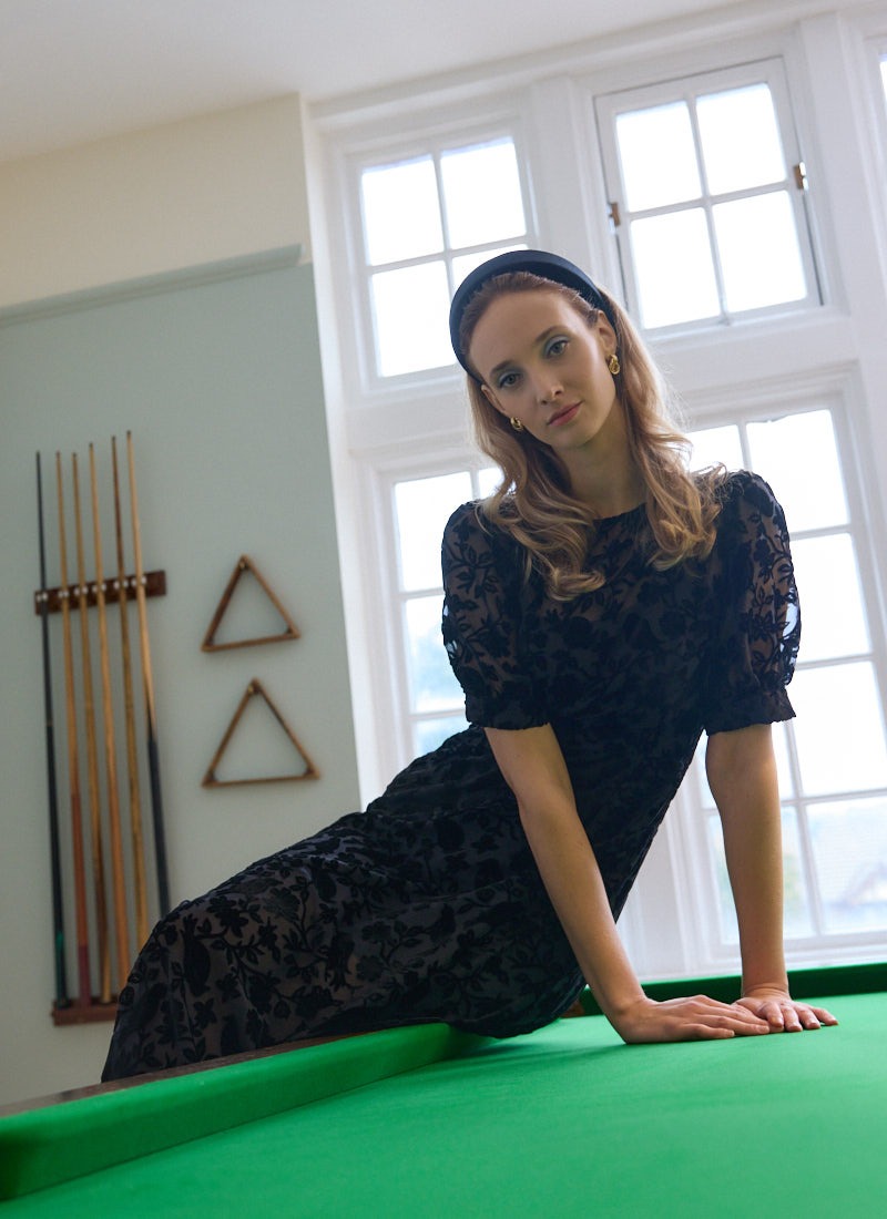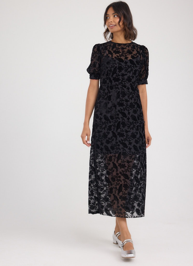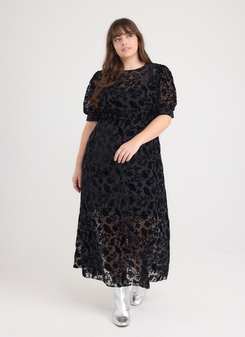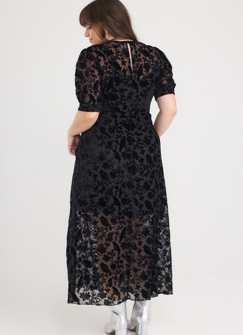 Anastasia Puff Sleeve Velvet Maxi Dress - Black