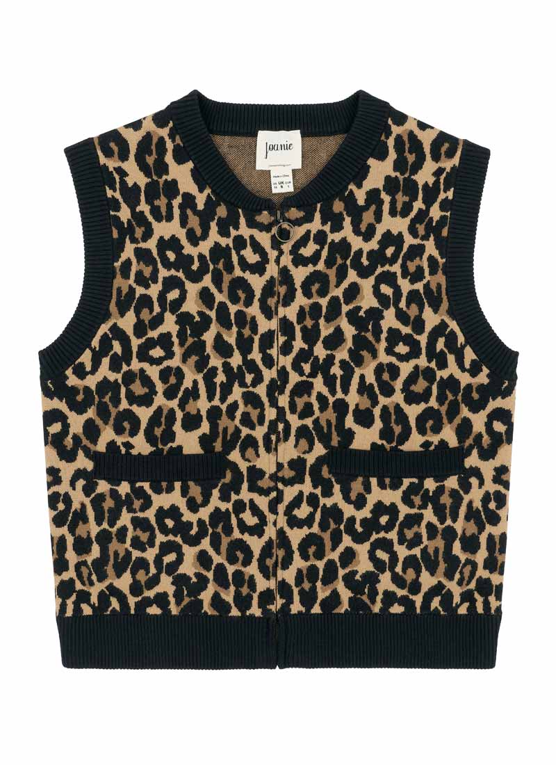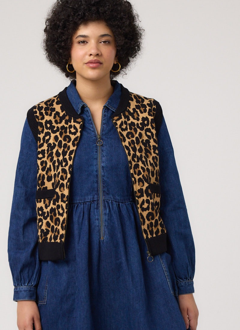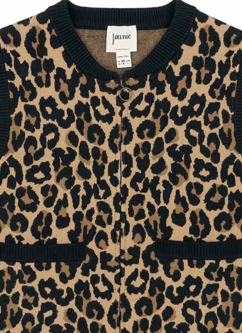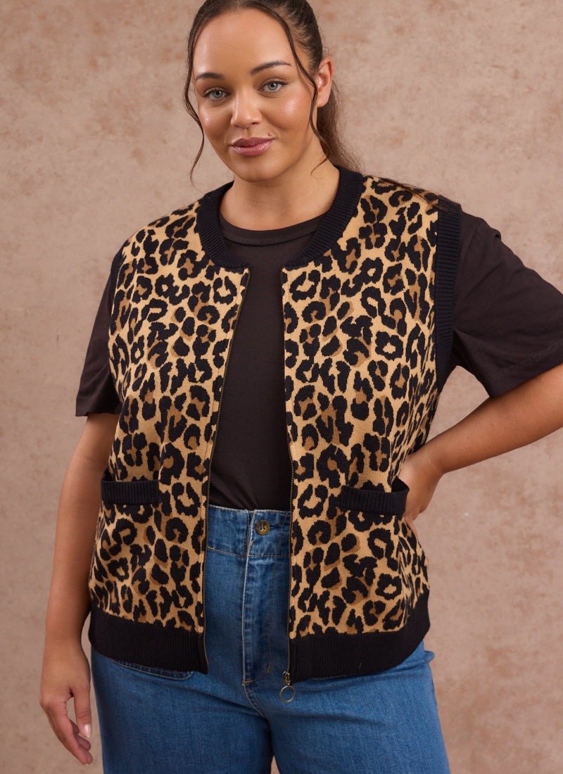 Samantha Leopard Intarsia Knit Zip-Through Gilet