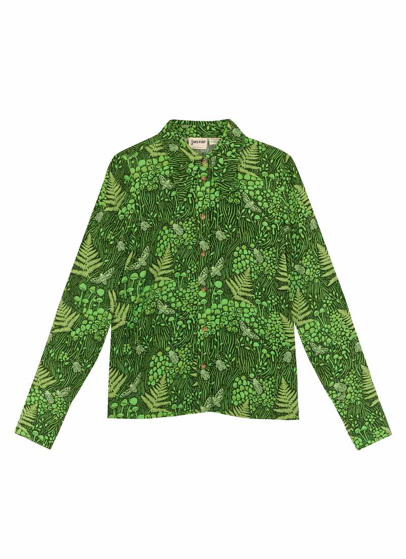 Velma Leafy Forest Print Dagger Collar Blouse
