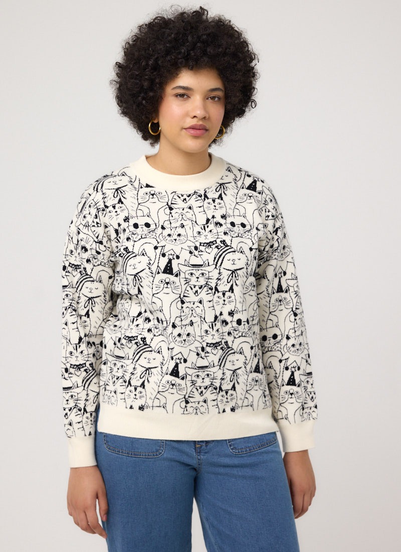 Jude Cat Intarsia Oversized Knitted Jumper