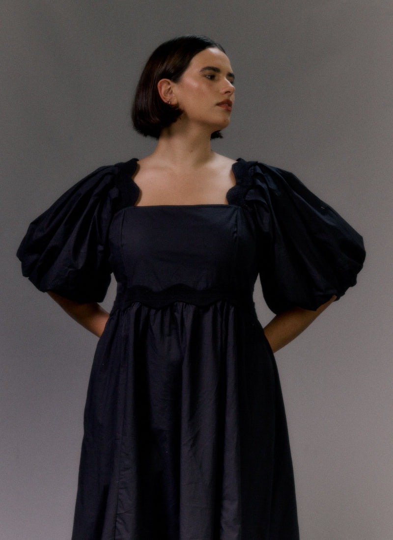 Stella Puff Sleeve Midaxi Dress - Black